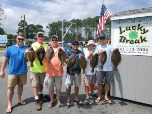 Captain Jason Mumford of Lucky Break Charters had a good day of flounder fishing this morning in the crowded bay. Captain Jason put his crew on 9 keeper flounder up to 20 1/4″.