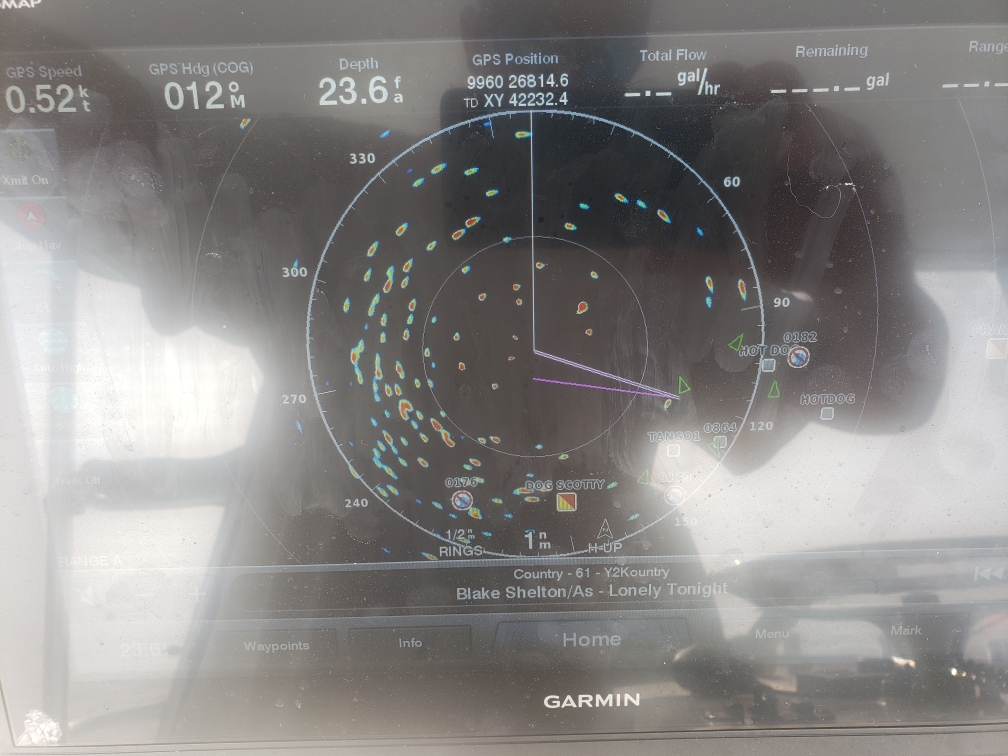 Tuna chunking was pretty slow for most today and I’m guessing it was thanks to calm seas and a huge crowd. Check out this screenshot from Captain Chris Little that shows the crazy amount of boats in just a one mile radar scan.