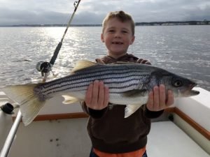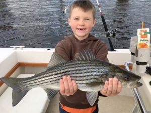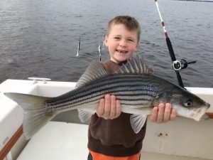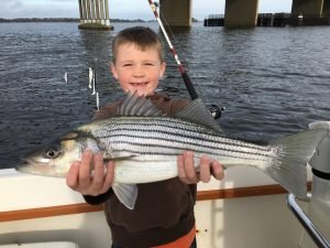 I saw my young buddy Grayson Wooldridge in church again this morning and he was excited to tell me that he was heading out again this afternoon to do some fishing with his dad John. John reported back that it was “on” today around the route 90 bridge where he and Grayson trolled small umbrella rigs in 48 degree water. Grayson put it to his dad releasing way more fish and even watched his pops lose a good fish at the boat.