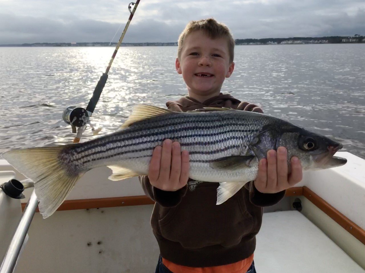 It was a really pretty day in and around Ocean City today with way warmer than average temperatures and light winds. It was cloudy for most of the day and there was a stray sprinkle, but overall it was really nice. Anglers were out on the bay in spite of the light fog and rockfishing was reel good for at least one group.