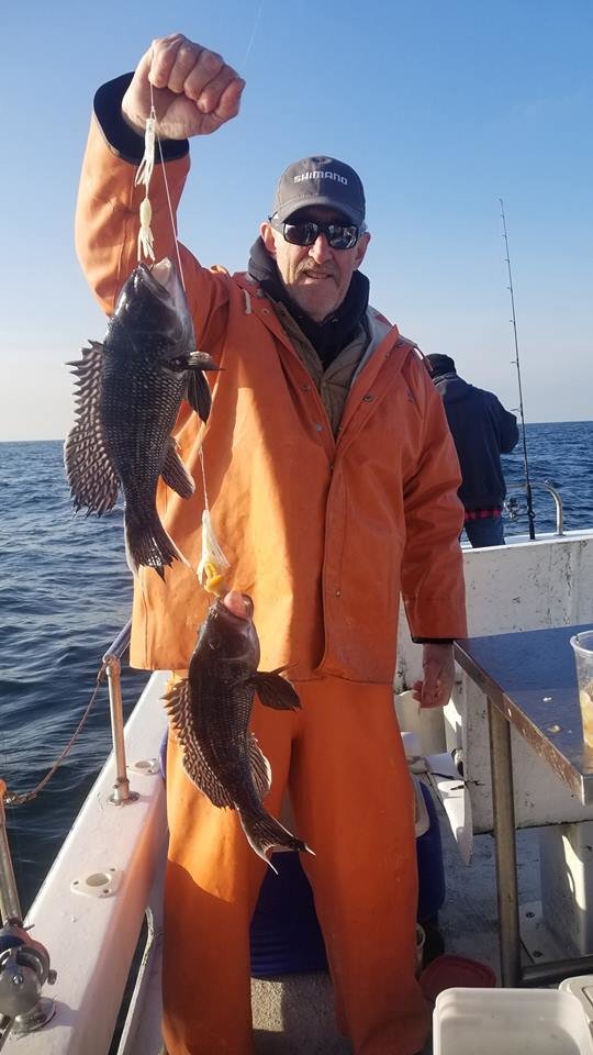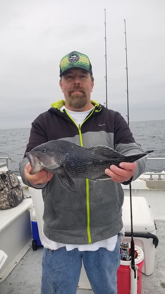 Captain Chris Mizurak of the Angler was off the beach yesterday as well and reported the same conditions with good fishing. Captain Chris had several anglers with limits of sea bass and some bluefish mixed in for good measure.