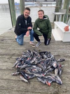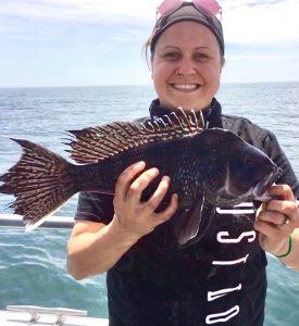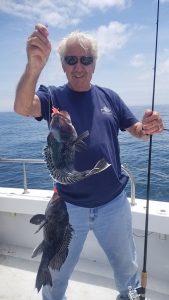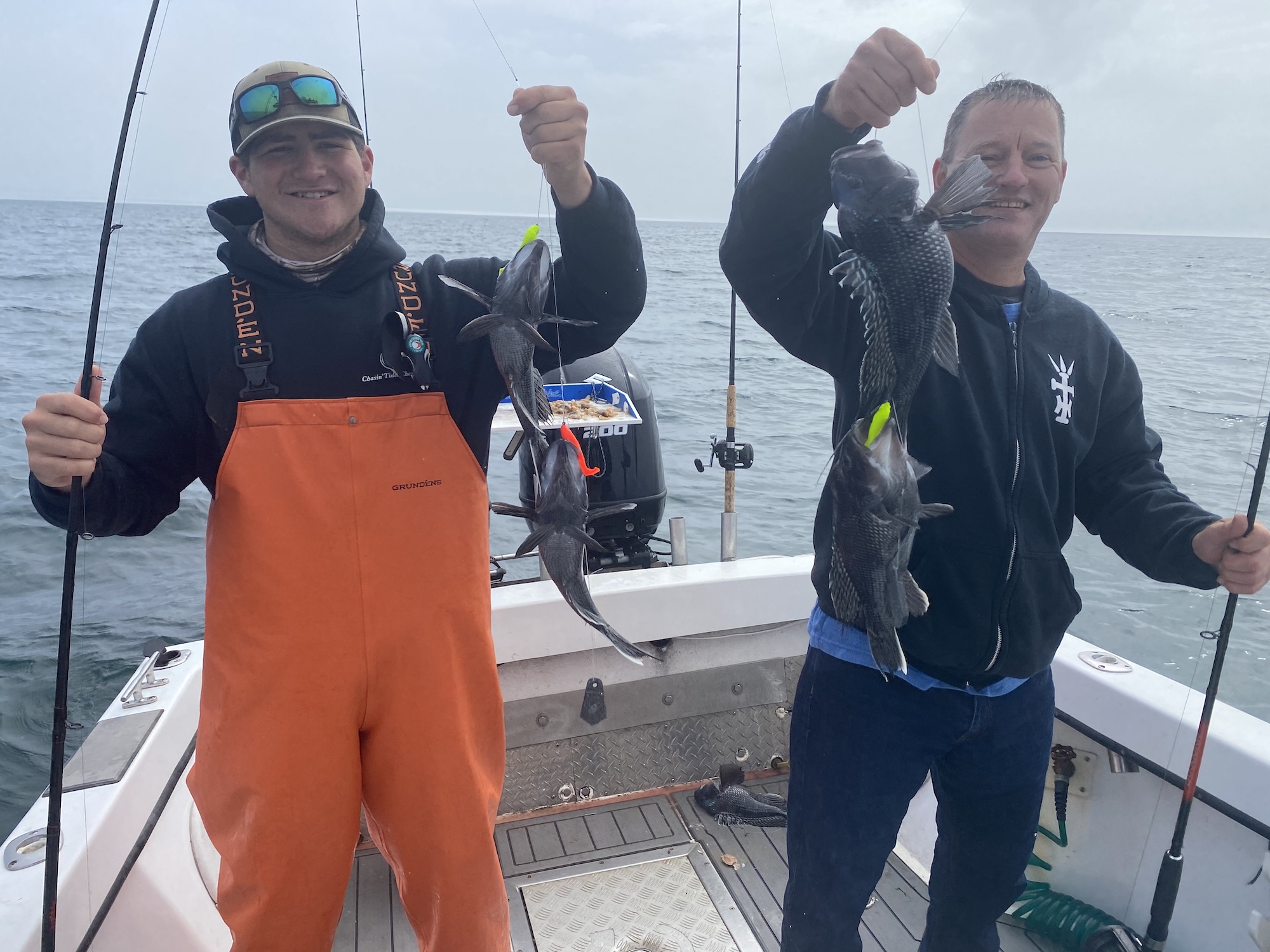 Captain Chase Eberle of Chasin’ Tides Charters was all over the sea bass today and yesterday with boat limits for his anglers on both trips.