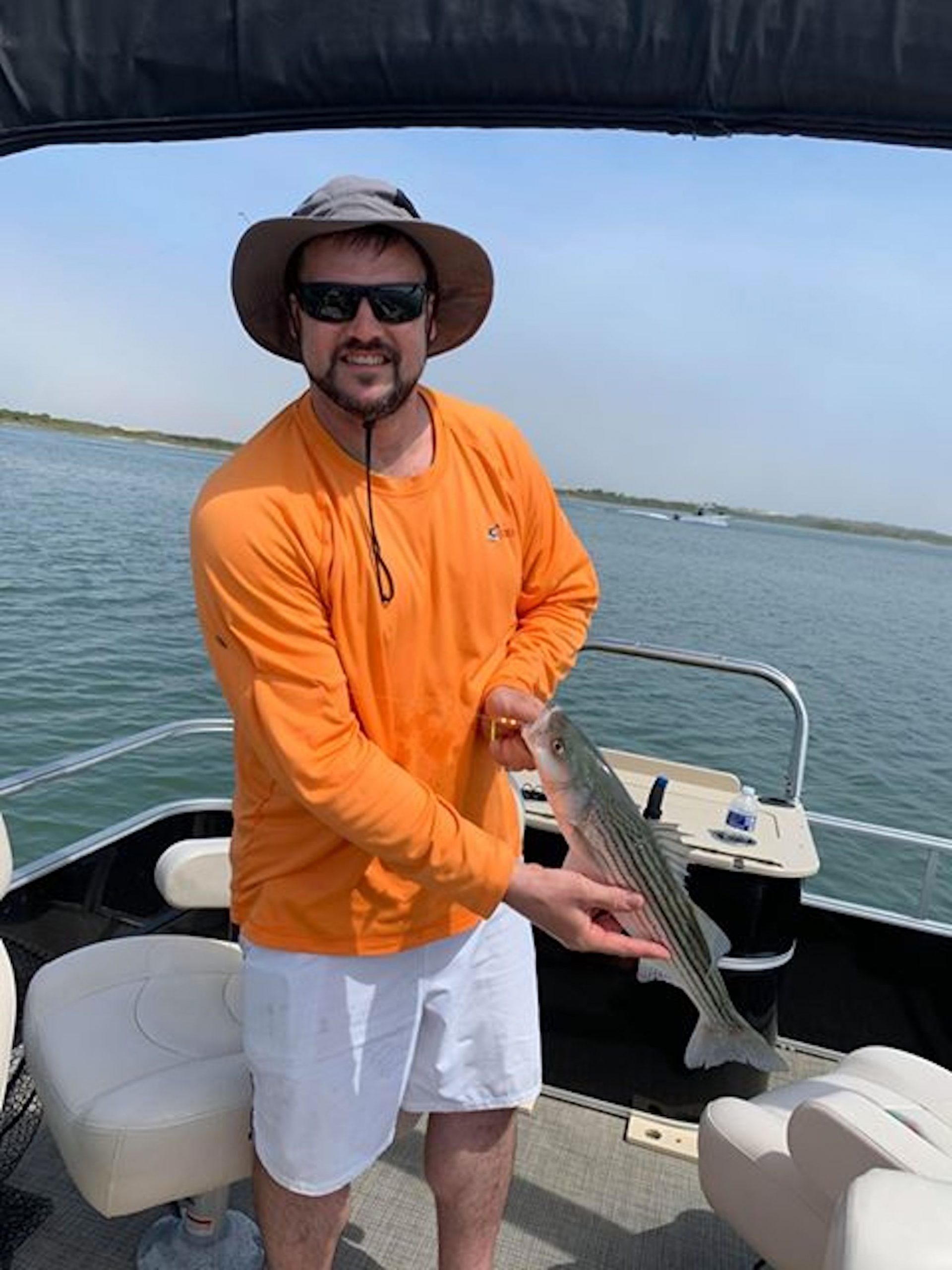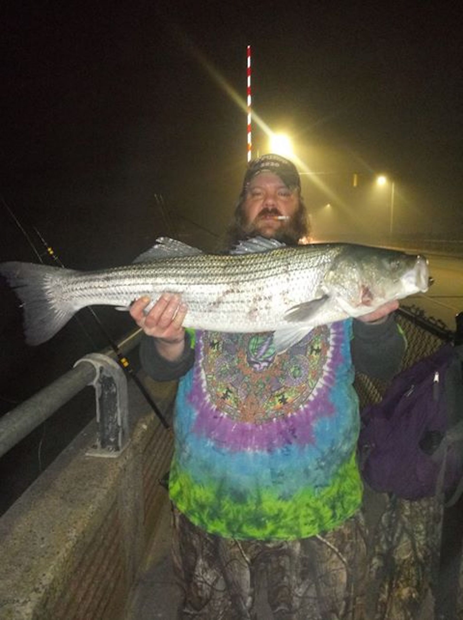 Steve Kretzing and Cham Som were flounder fishing with the Fish in OC Deadly Double when they were surprised by this short striper.