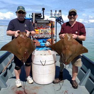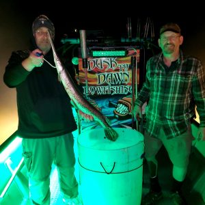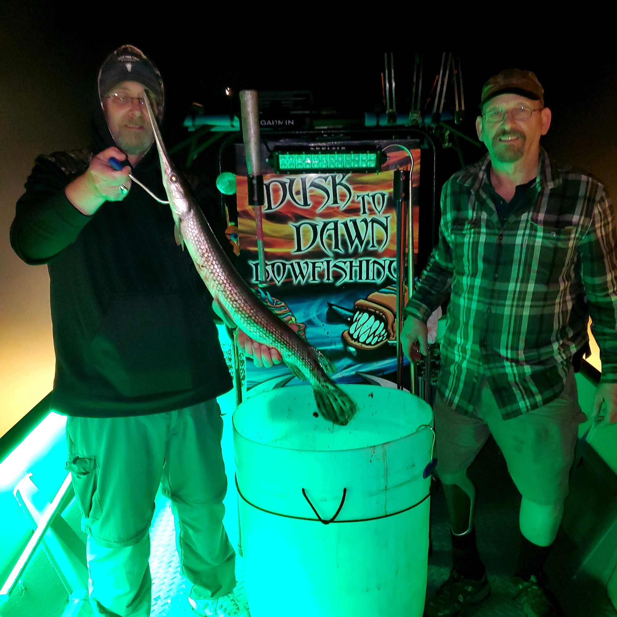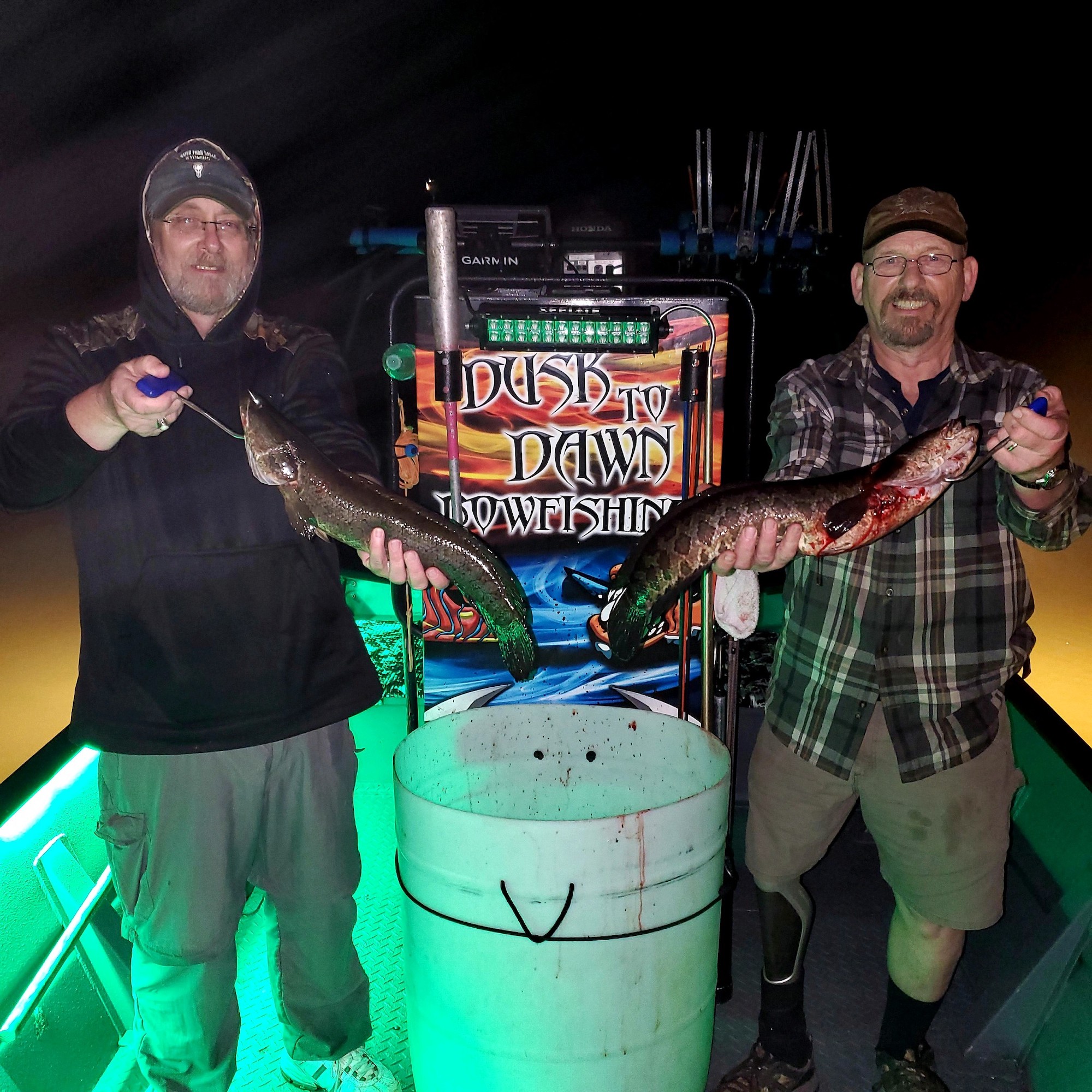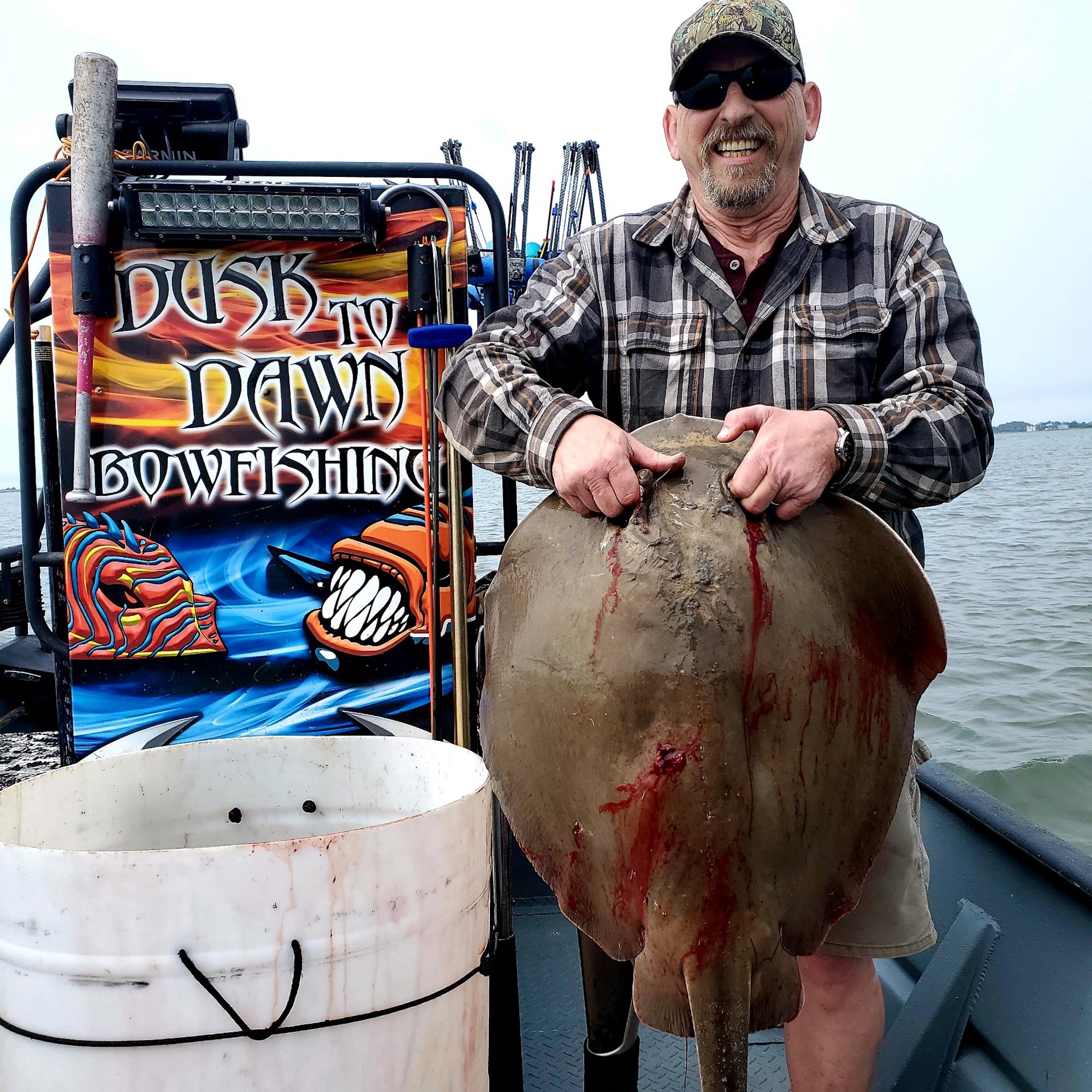 Captain Marc Spagnola of Dusk to Dawn Bowfishing burned the candle at both ends with trips to the river at night and the Chesapeake Bay during the day. The action was good for snakeheads and gar at night and cow nosed and southern rays during the day.