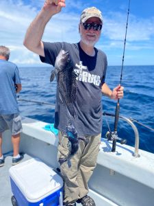 Captain Chris Mizuarak of the Angler reported a hot bite for sea bass on today’s trip.