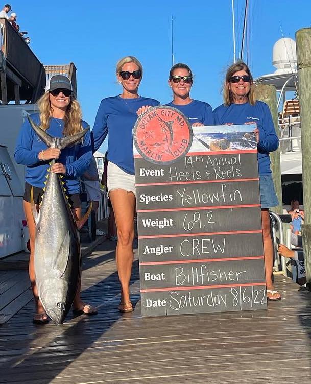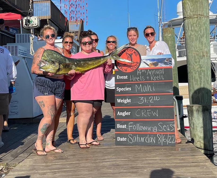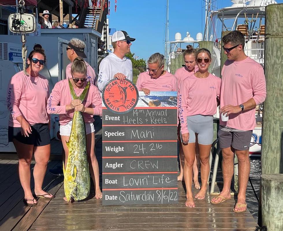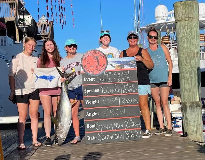 Payouts are still being tabulated for the 2022 Ocean City Marlin Club Heels & Reels ladies only tournament, but we did get some photos from scales action today at Atlantic Tackle in West Ocean City. We’ll post the final results tomorrow when we get payouts and winners.