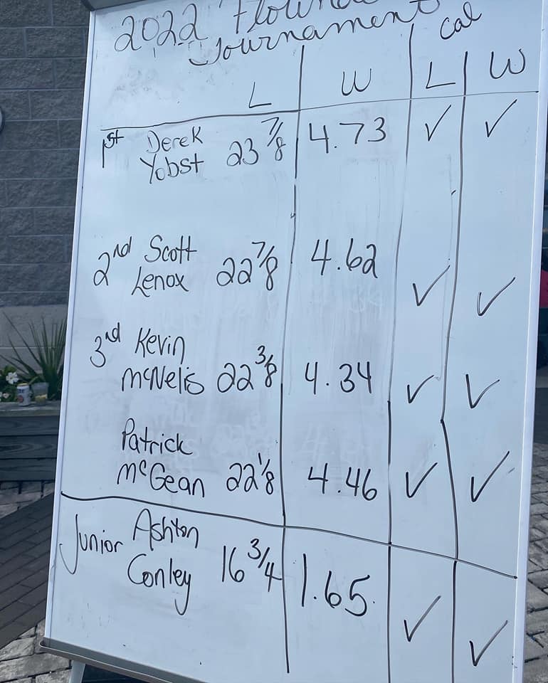 2nd Place – 2nd Place Weight & Length Calcuttas Some guy named Scott Lenox 22 7/8″ 4.62 Pounds