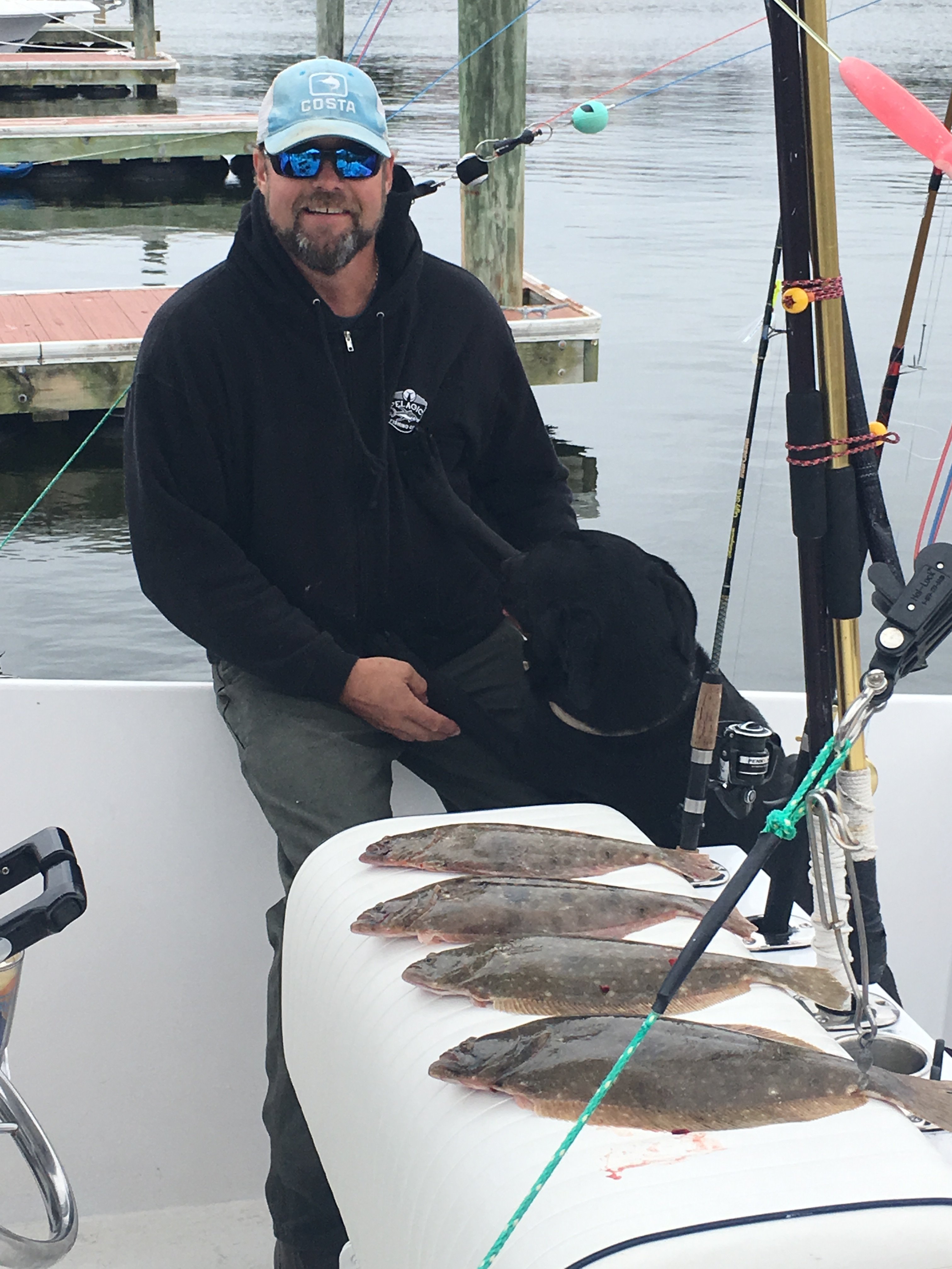 Captain Jason Mumford of Lucky Break Charters had clients out for some October flounder fishing and he put them on the fish in a big way. Captain Jason had over 60 throwbacks for his crew and was able to find four nice fish over 16 1/2″ for the cooler.