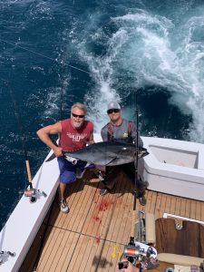 Captain Chris Little and the crew of Talkin’ Trash had a great day trolling offshore as well putting his anglers on their three “under” and one “over” bluefins.