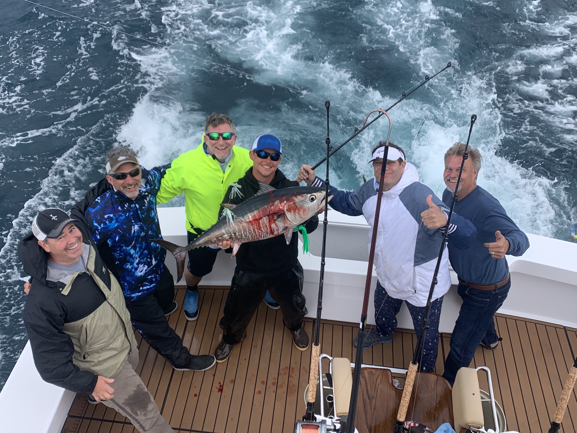 Captain Willie Zimmerman of the RoShamBo had another good day with the bluefin tuna out in the Poorman’s Canyon today. Captain Willie put his crew on their three “under” bluefin tuna between 27″ and 47″, releasing another 4 and also found a nice “over” bluefin tuna at 51″.