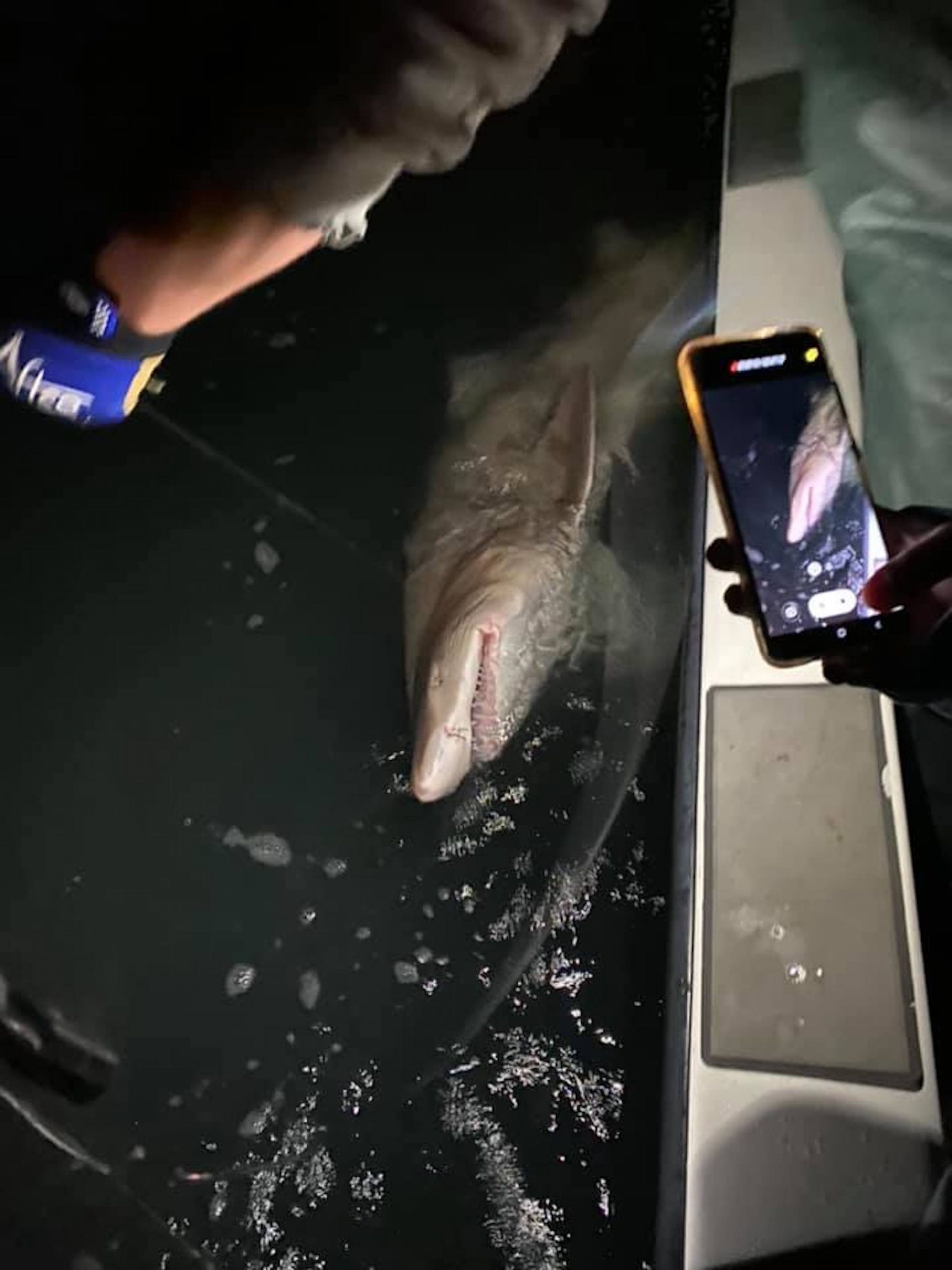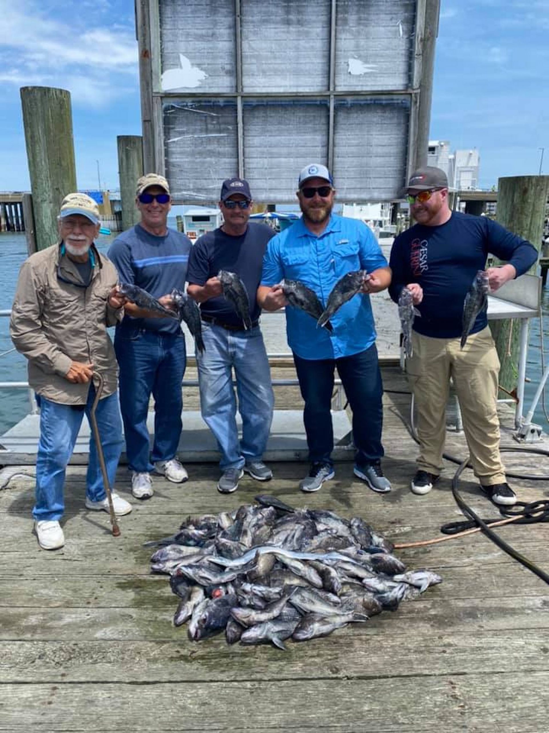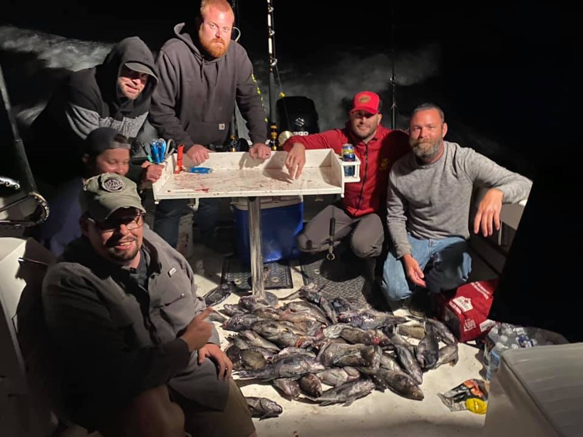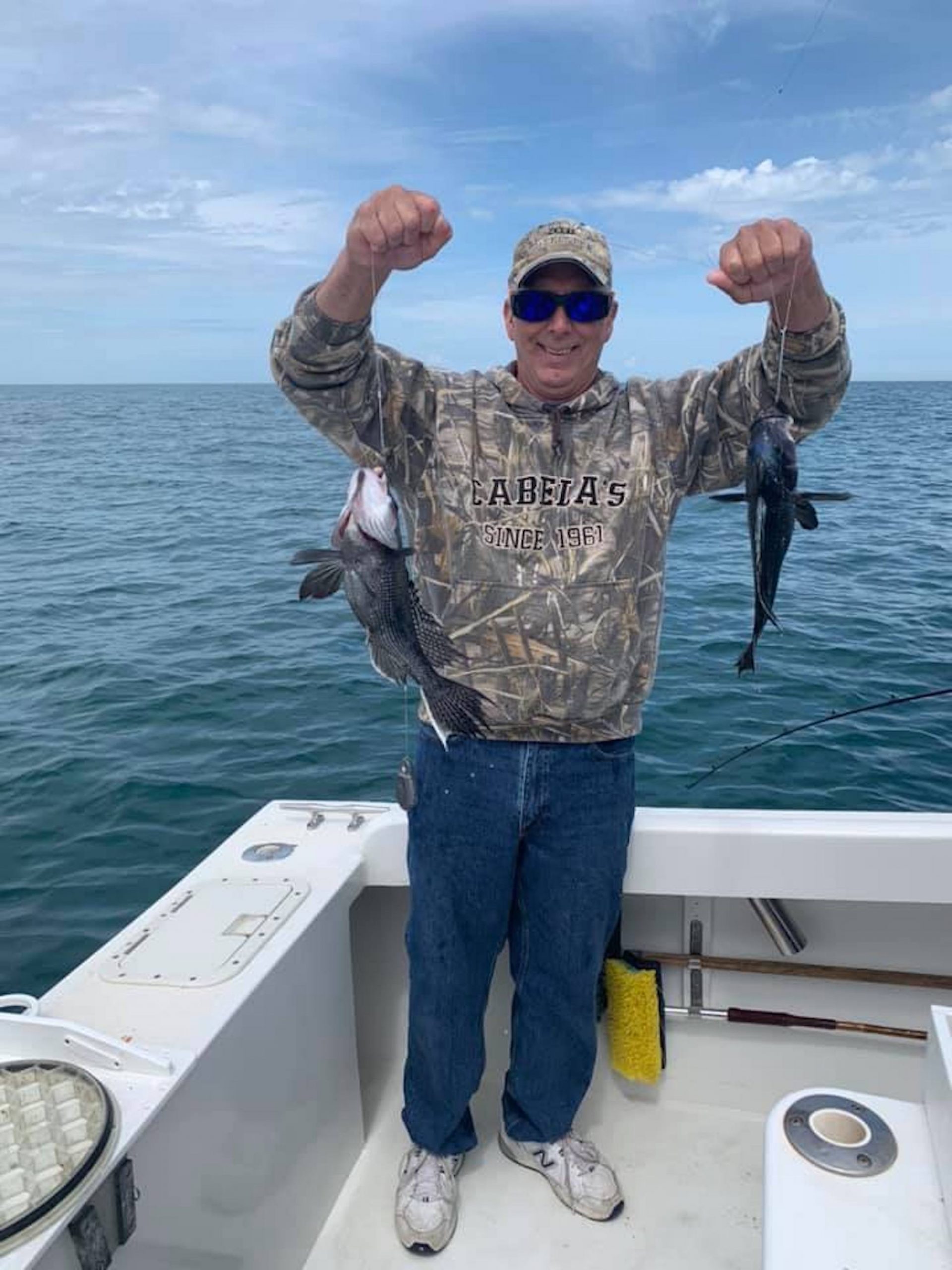 Captain Chase Eberle and the crew of Chasin’ Tides Charters had a great day and night yesterday putting limits of sea bass in the cooler and releasing a big sand tiger shark.