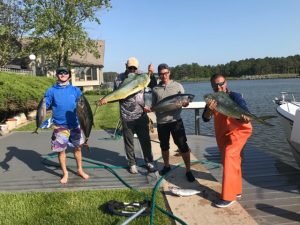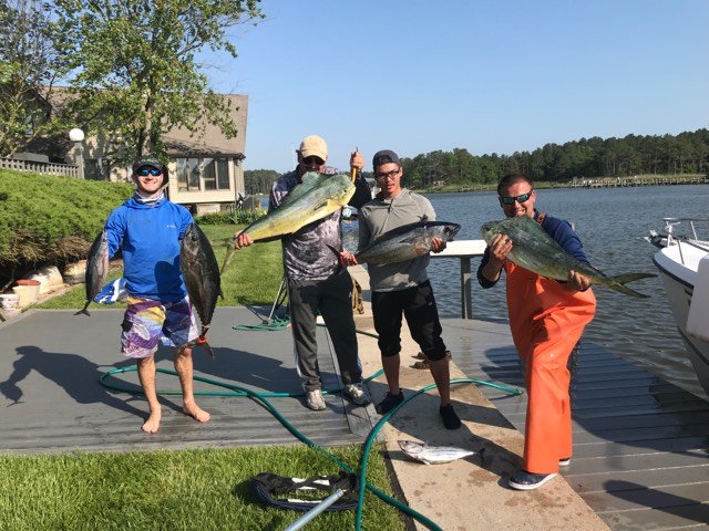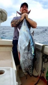 I had some reports come in today from folks that took advantage of the good fishing from this past weekend and there were some nice fish in them. Mark Handley and Yani Harris fished 100 fathoms in the Wilmington Canyon on Saturday and landed this bruiser of a 47″ bluefin on a trolled ballyhoo.