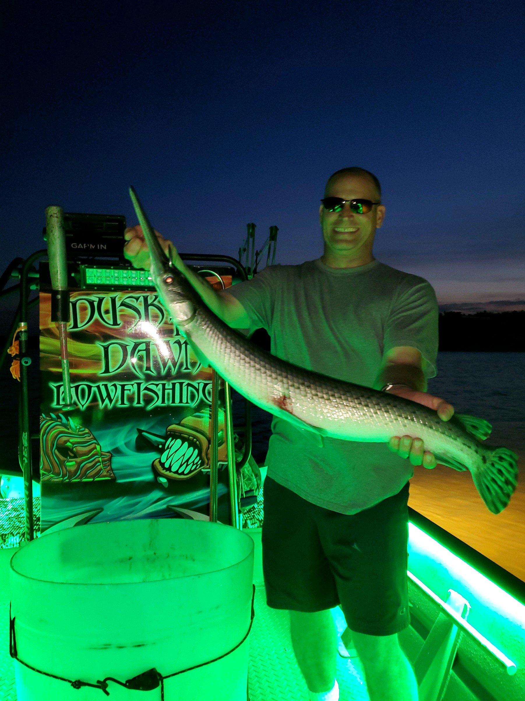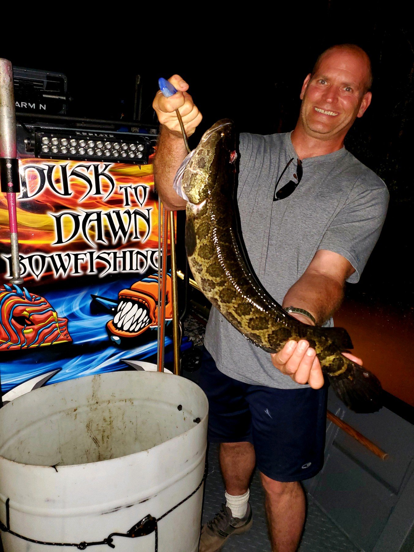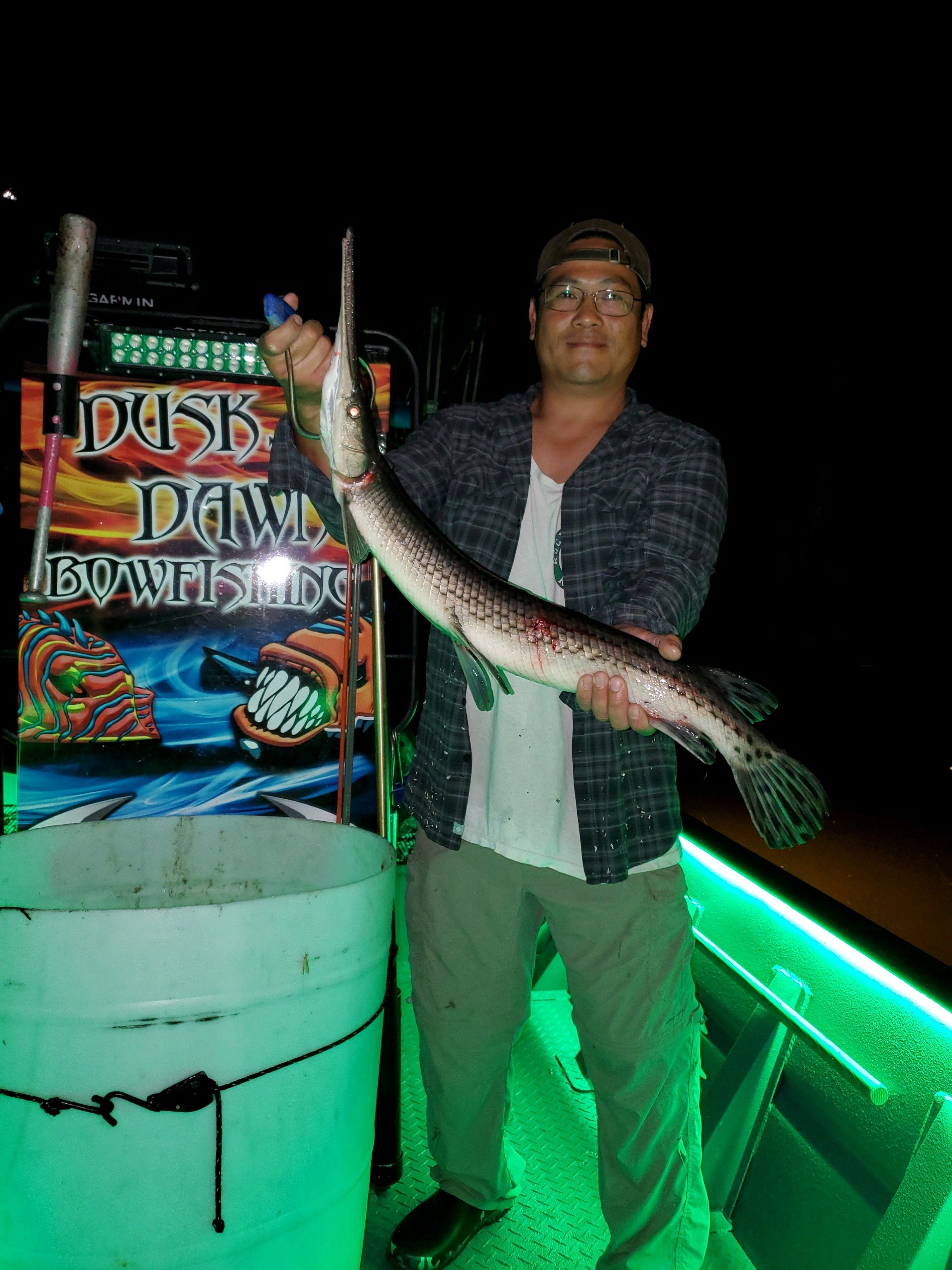 Last night Captain Marc Spagnola of Dusk to Dawn Bowfishing showed his shooters another good time. Captain Marc once again had good shooting for some big gar and some tasty snakeheads.
