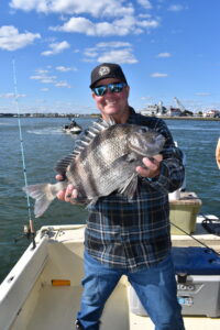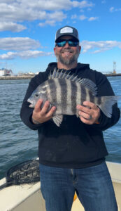 It was a little chilly and the wind picked up this afternoon a little, but overall it was a very nice day to be on the water. The jetties are jumping with sheepshead, tog and flounder right now and there are also some flounder, drum, bluefish and rockfish being caught. It’s a great time of year to go fishing.