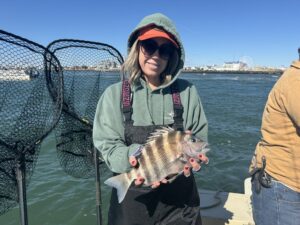 I had the pleasure of joining Dan and Shaunna Cavey on board the Lucky Break with Captain Jason Mumford today and we had a fantastic trip. Dan and Shaunna both caught their first ever sheepshead and tautog today and I lucked into my personal best sheepshead too at 7 pounds and just under 21″. We ended up with seven nice keepers for the box and released some small sheep and tautog as well. It should make for an awesome episode of Hooked on OC in the coming weeks.