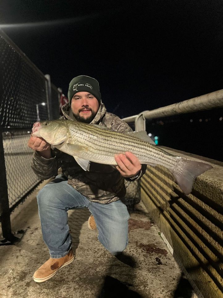 Ryan Ellerman caught a 30″ keeper rockfish and Mr. Leo caught and released a 37″ over slot rockfish while fishing the route 50 bridge last night.