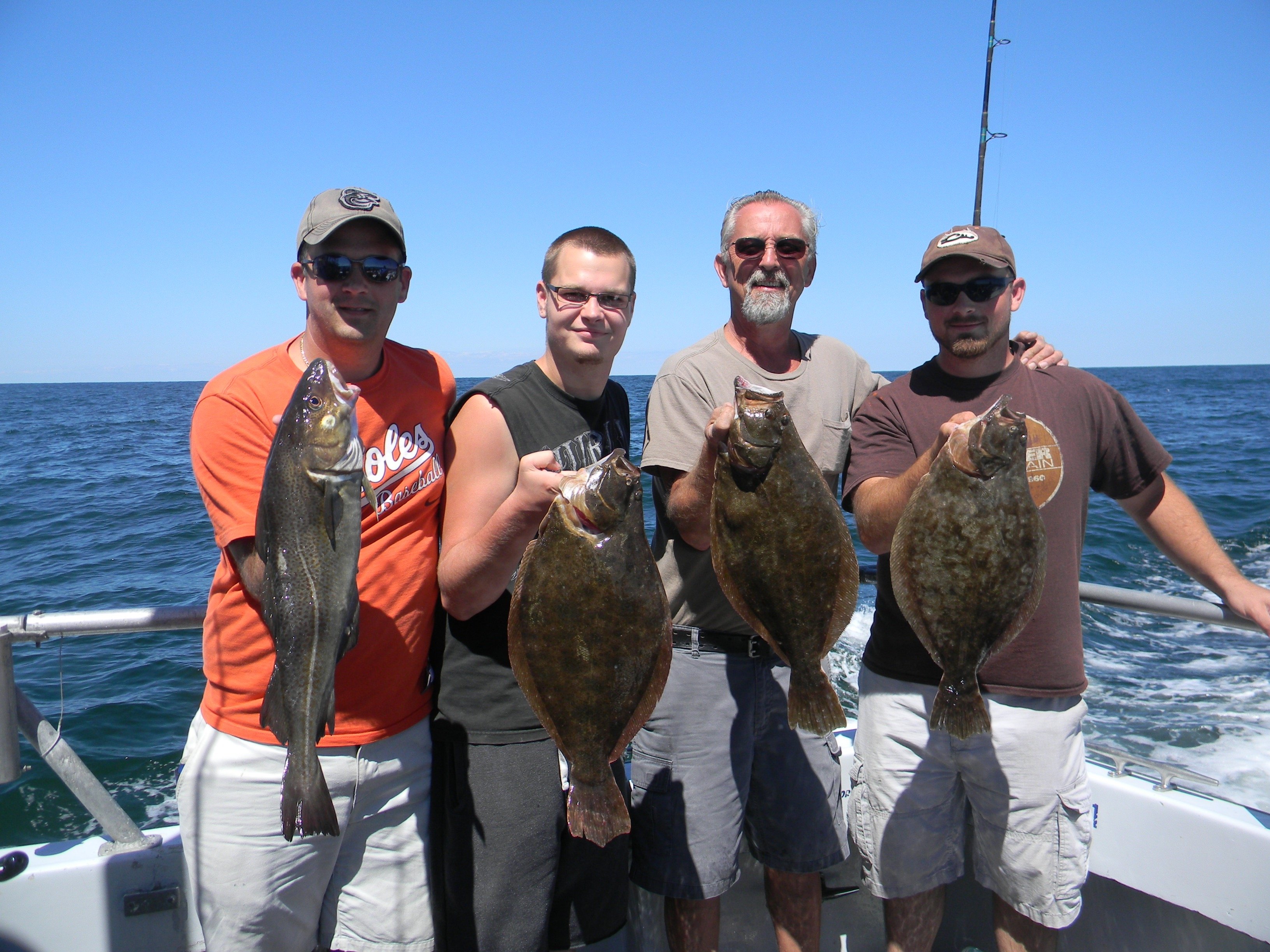 Let’s start inshore. Captain Monty Hawkins on the Morning Star out of the Ocean City Fishing Center had a great submission today. Here’s Bob Grice of Salisbury with a legal cod – Austin Axe of Mt. Joy, PA – followed by Tony & Anthony Watson of Pittsville & Hebron respectively. The cod was caught right in with the flounder.