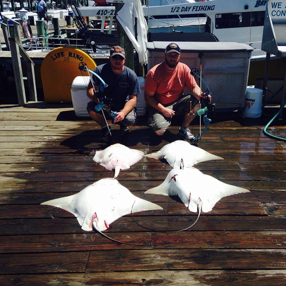 Captain John Prather is pretty darn good at getting bow fisherman an opportunity to shoot some rays, and today was a perfect example of it. Captain John put these bow fishermen on four nice size rays and they took care of the rest.