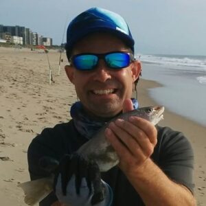 Marc Turner had some luck fishing the surf in north Ocean City this morning using squid and put some nice kingfish on the beach.  One fish was 13 1/2″.