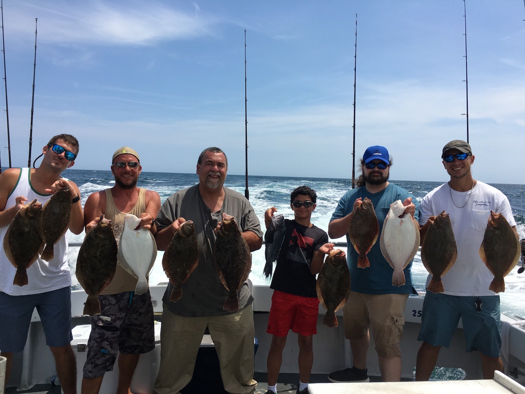 Flounder fishing over ocean structure continues to improve to the tune of some guys catching four fish limits when the bite is right.  The bite was right today for Dan and Dan Davis from Glen Burnie, MD, DJ Hutton from Baltimore, MD, Michael Haseman and Cory Morgan from Ocean City and Christian Workman from Salisbury, MD when they fished with Captain Monty Hawkins on board the Morning Star today.  Captain Monty has some room at the rail tomorrow if you can get on board on short notice.