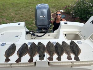 Bill and Stephanie Powell used the Deadly Tackle Deadly Double and white Gulp to catch a limit of flounder this morning.
