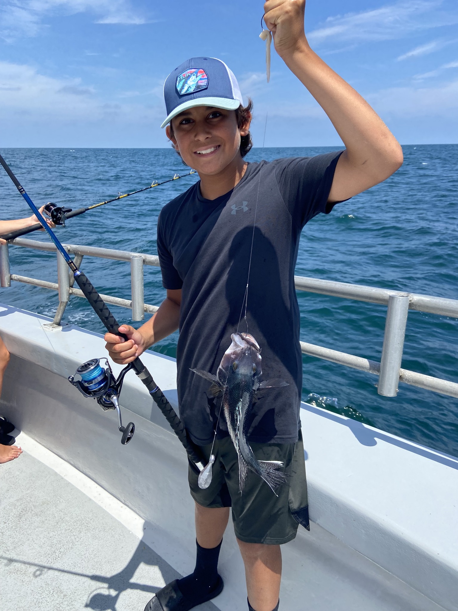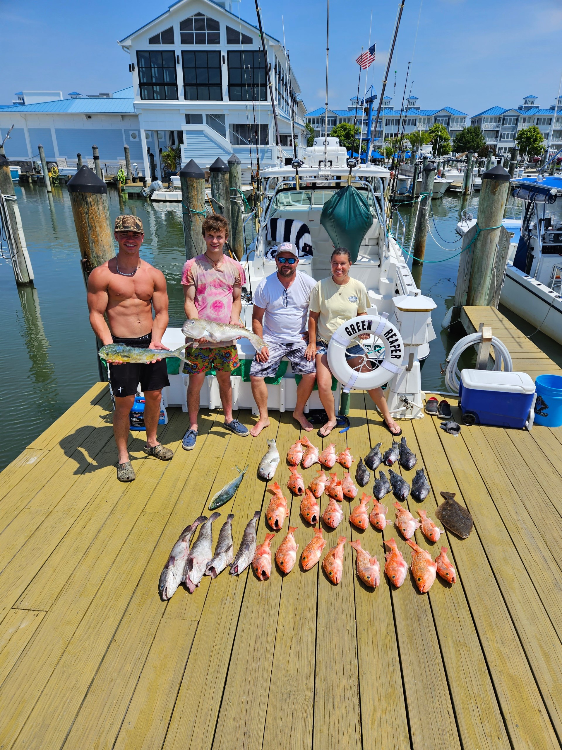 JD, Mary, Jacob and Justin Eddy from Ellicott City, MD had a great day of fishing the ocean yesterday when they caught a flounder, 7 sea bass, 2 golden tilefish, 4 hake, 2 maxi and 23 black belly rosefish.