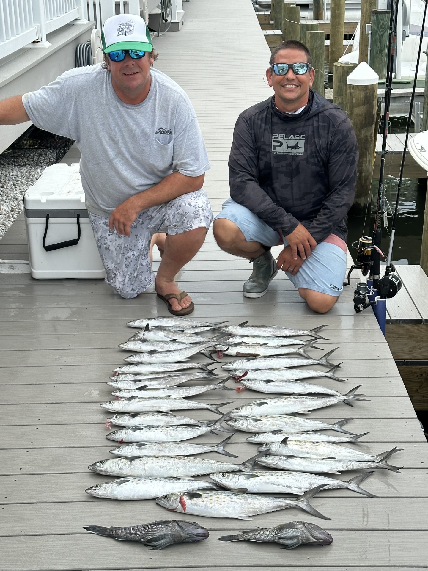 Jeff Weeks and Dave Weller had a nice day in the ocean with a couple of sea bass and a bunch of Spanish mackerel.