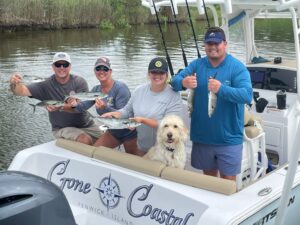 Mike Runkles, Leanne Runkles, Paige Runkles, Andrew Nickell and Dutton found some nice Spanish mackerel at Fenwick Shoal on small spoons behind #1 planers.