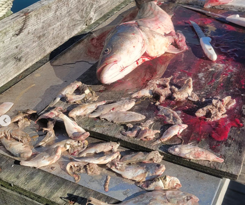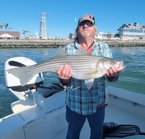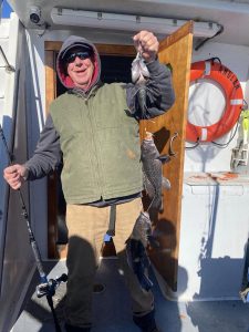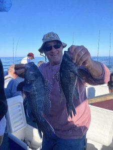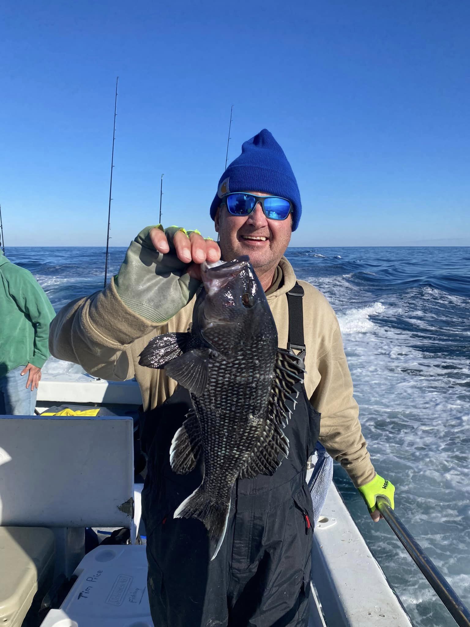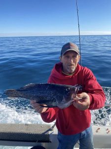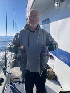 Captain Chris Mizurak of the Angler said it was a beautiful day for sea bass fishing today and plenty of fish ended up in the box.