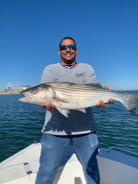 The recent cold weather continues to move the water temperature gauge into the mid and upper 50s and that is just primo for rockfish and tautog inshore. Today was a nice fishable day and there were some guys out enjoying it and putting some keeper sized fish in the boat.