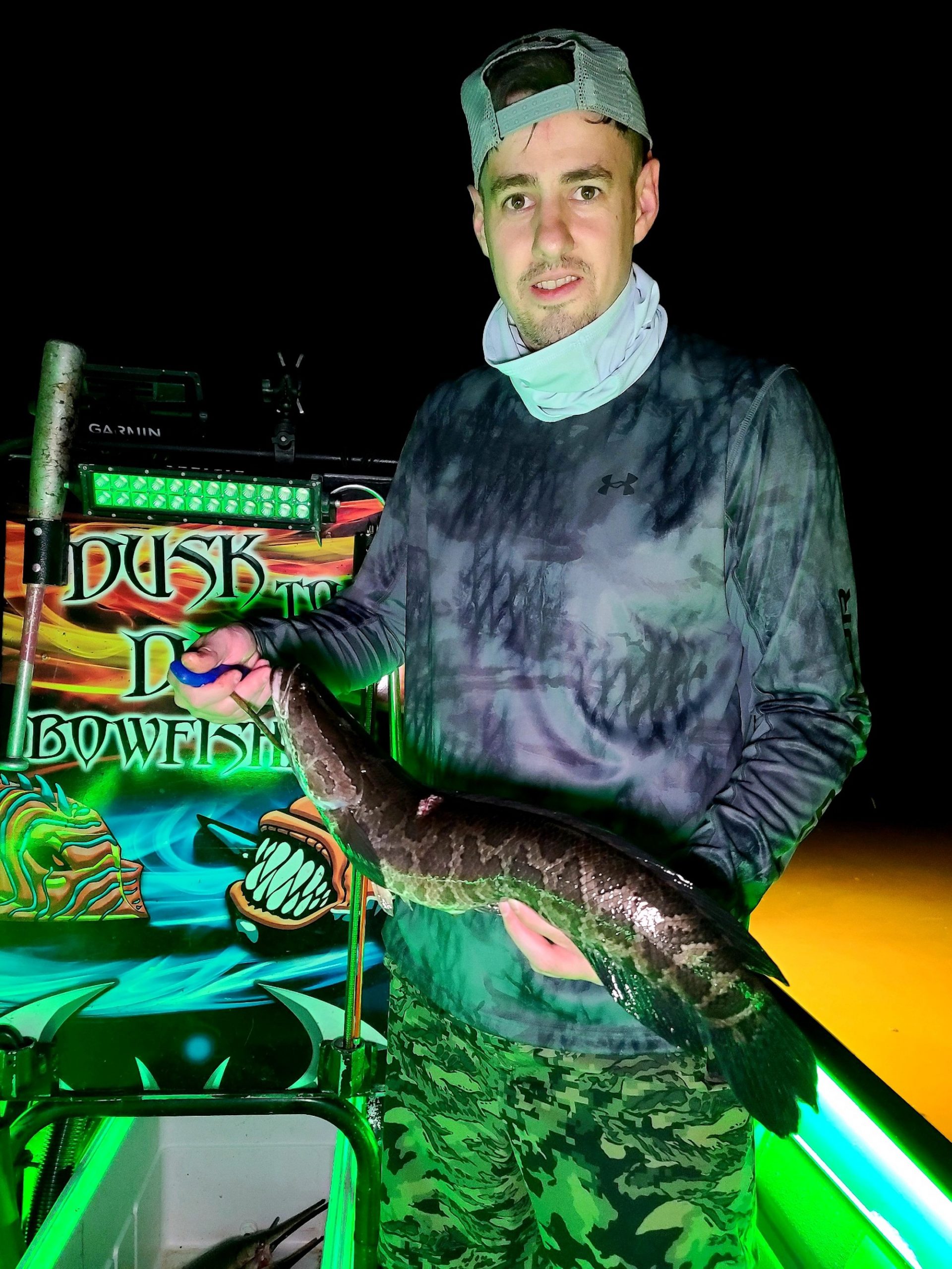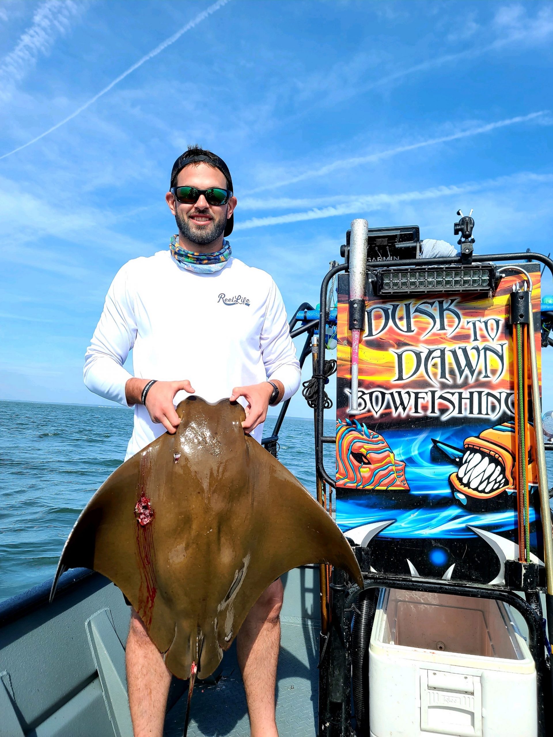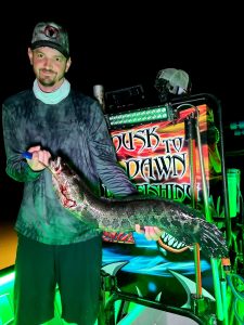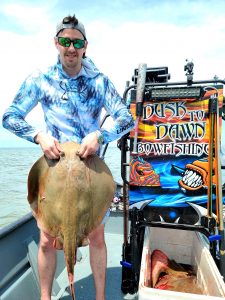 Captain Marc Spagnola of Dusk to Dawn Bowfishing is burning the candle at both ends again, but his shooters are certainly grateful.  Captain Marc has shown them some good fishing for cow nosed and southern rays during the day and snakeheads, gar and catfish at night.