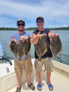 Flounder fishing has picked up a little over the past few days with some cleaner water moving into the bay.  Captain Jason Mumford of Lucky Break found keepers on both of his trips today.