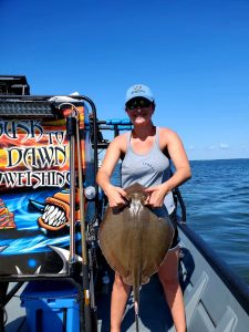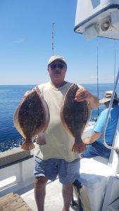 Captain Chris Mizurak of the Angler got a good picture of the flat calm conditions and some good pictures of nice flounder up to as big as 5 pounds.