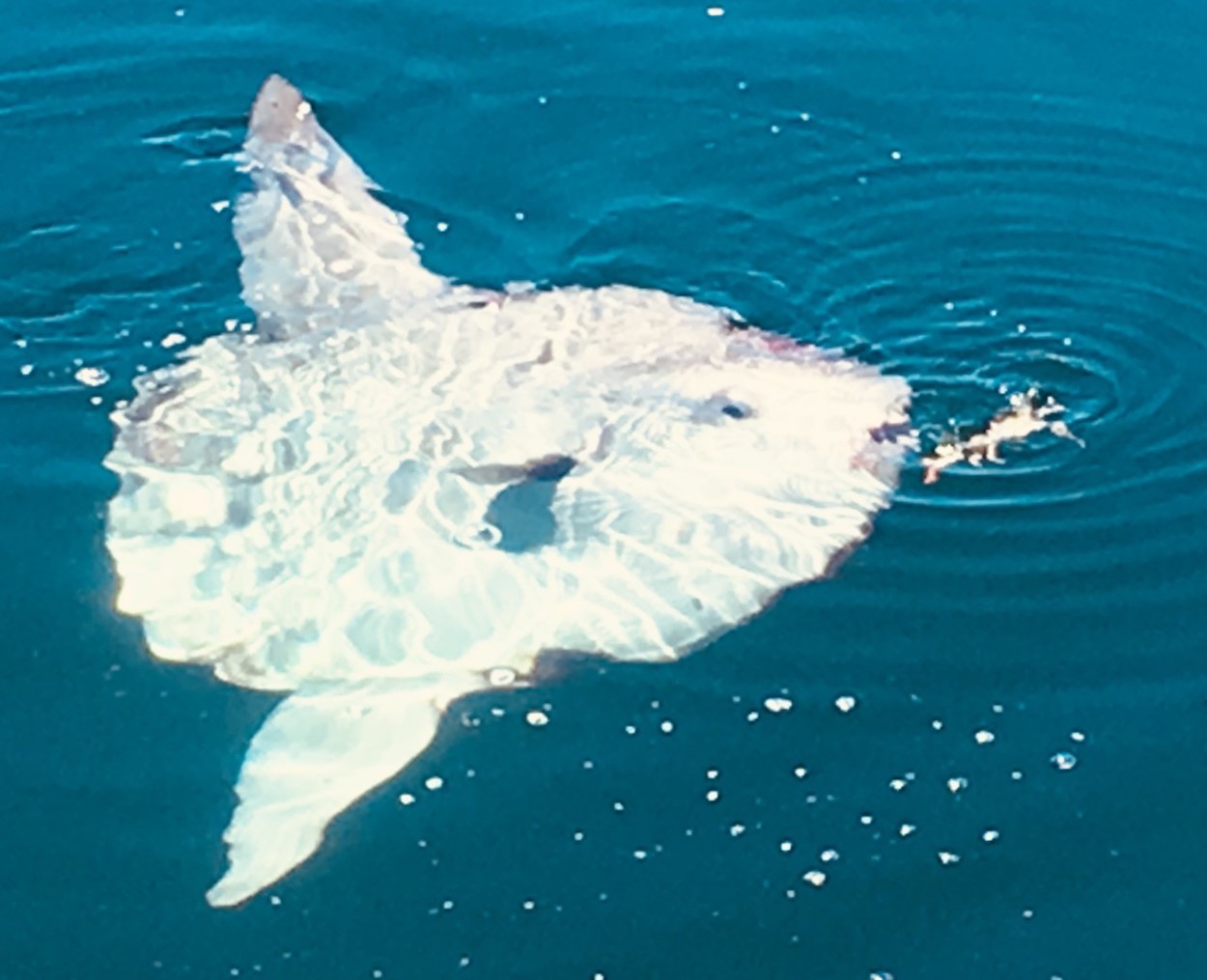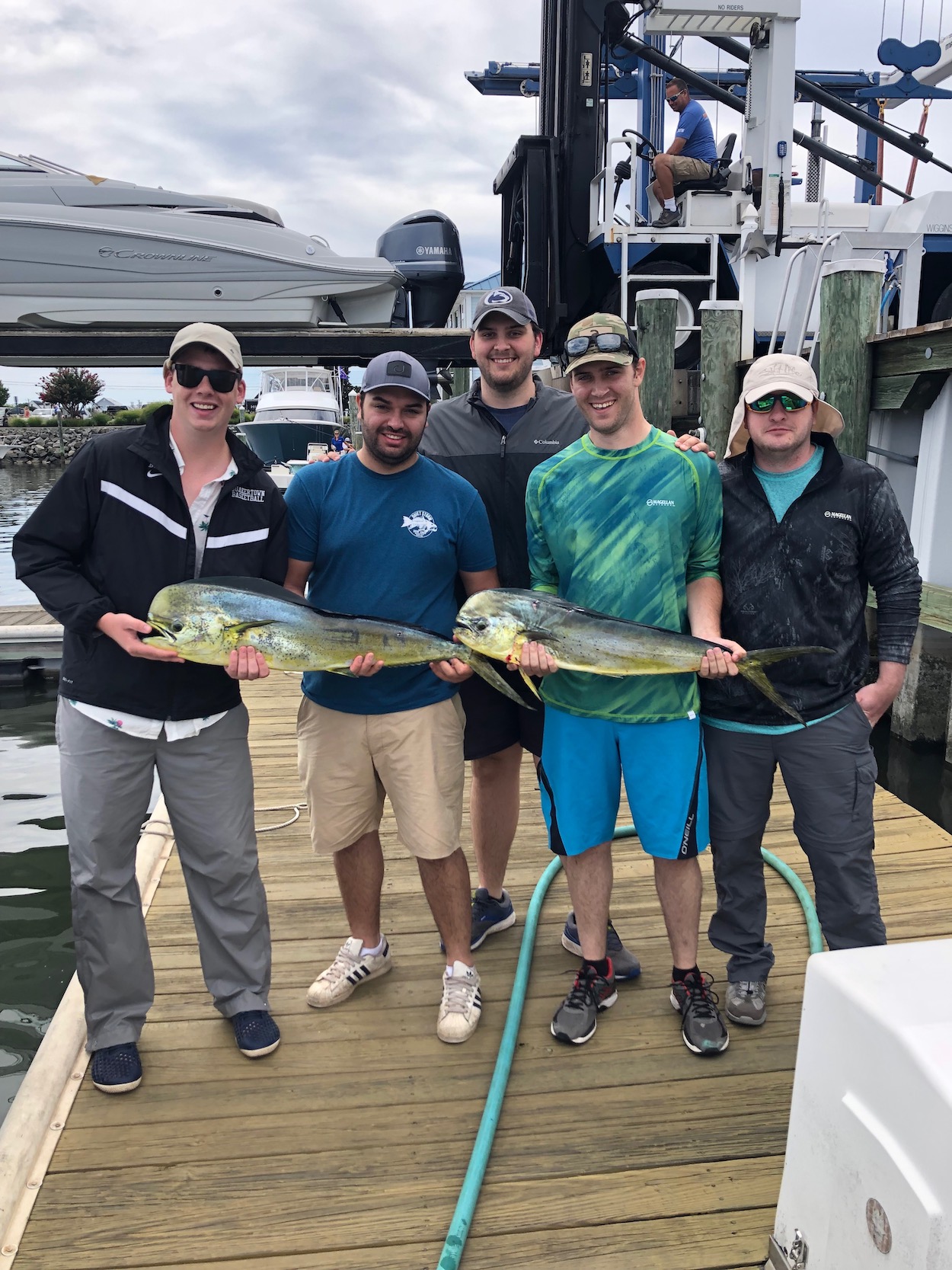 We caught everyone a nice fish fry, I think. First blue crab of the year swam by. An ocean sunfish tried to eat it but the crab was having none of it. One fellow bagged an inshore partyboat jumbo mahi too.