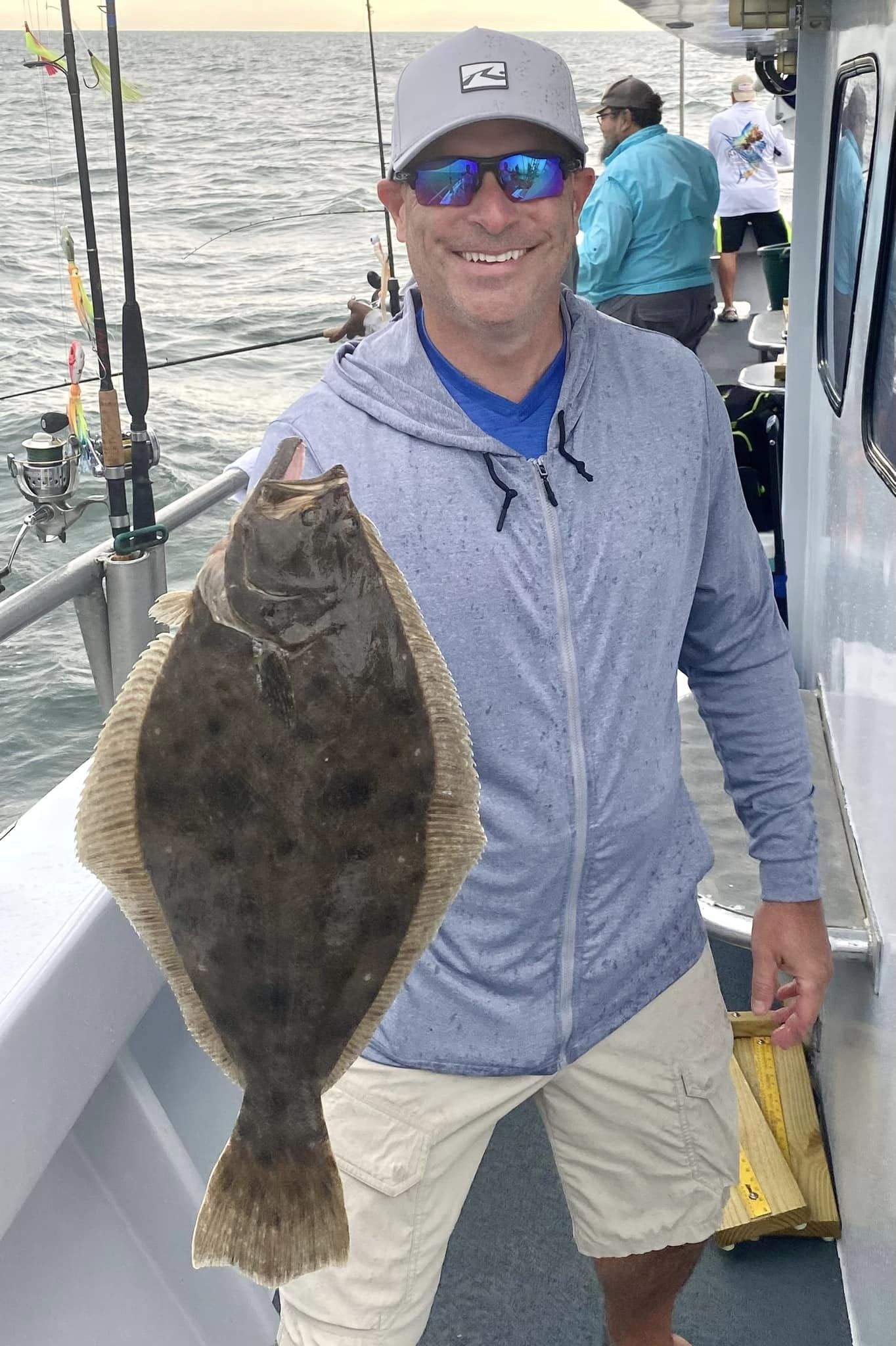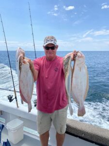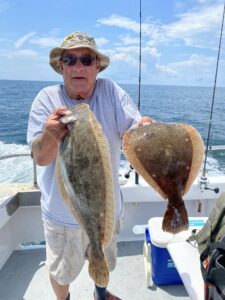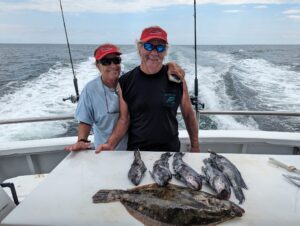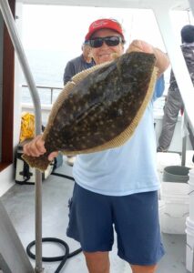 Today, Captain Monty Hawkins of the Morning Star had some flounder and sea bass between the rain drops.