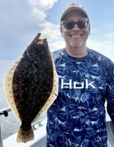 “Nature Boy” Shaun Flaherty caught this nice 22″ flounder fishing the south jetty.