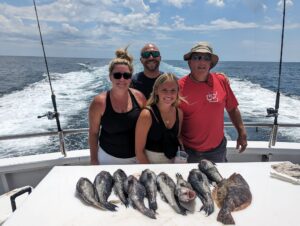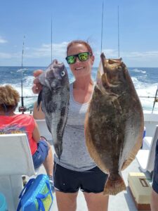 Captain Victor Bunting and the crew of the Ocean Princess had a good bite today in the much calmer ocean with plenty of sea bass and flounder for happy anglers.