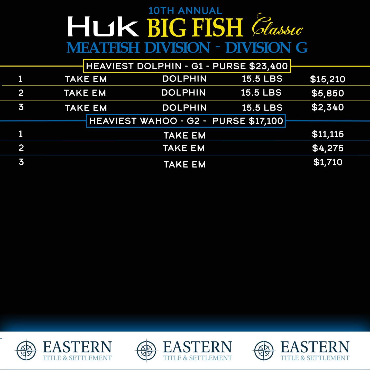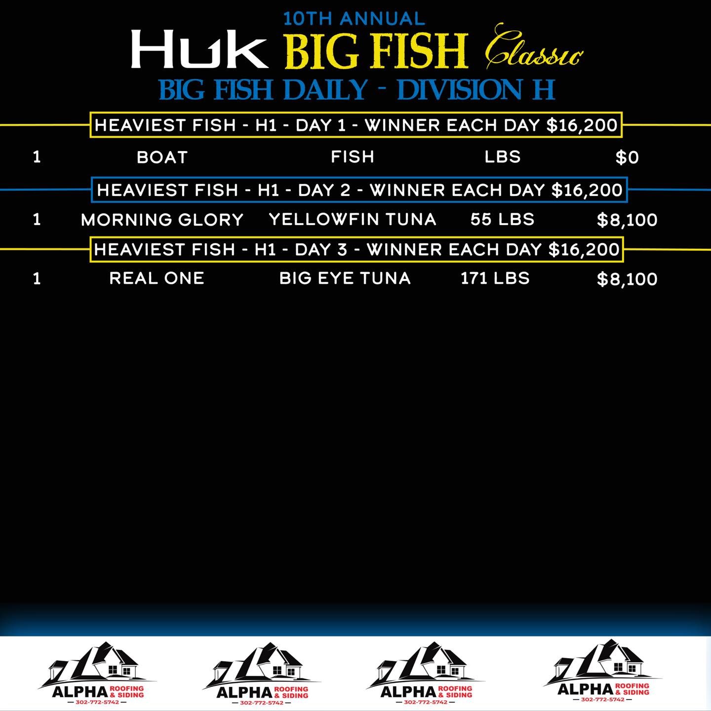 I just got back from the awards ceremony for the 10th Annual HUK Big Fish Classic and it was an awesome and exciting time! Tournament directors made a great decision to extend this year’s event to include a Sunday/Monday window and it was a true tournament saver. Almost all of the action took place this afternoon with lots of fish landing on the scales and lots of money being passed out just a short time ago. Congratulations to all of the winners and to tournament directors Brian Roberts, Stephen Lewis, John Lewis and Sean Welsh. It’s a real pleasure emceeing this event and an honor to be a part of it. Below are your top three Big Fish followed by results from the Big Fish website.