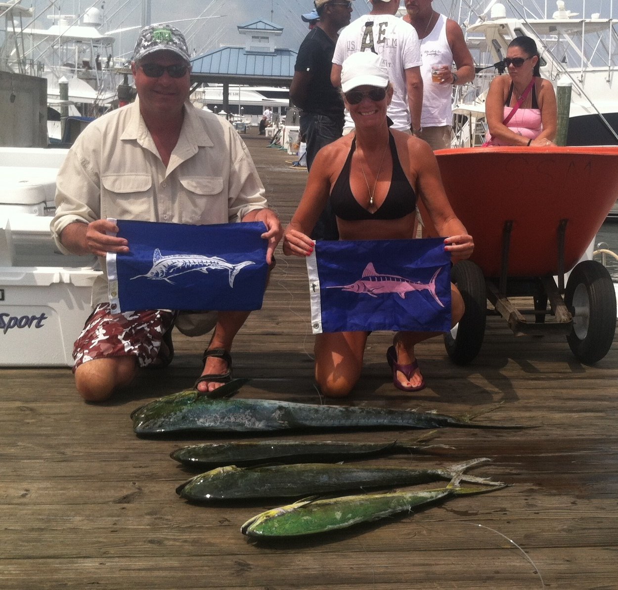 Rhonda’s Osprey was on the troll practicing for the White Marlin Open today and had some pretty good luck. Captain Joe Drosey and crew put their party on two white marlin releases and some nice gaffer mahi.