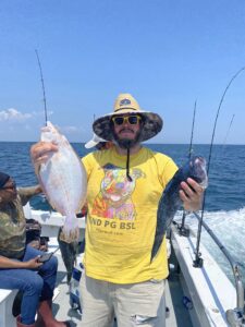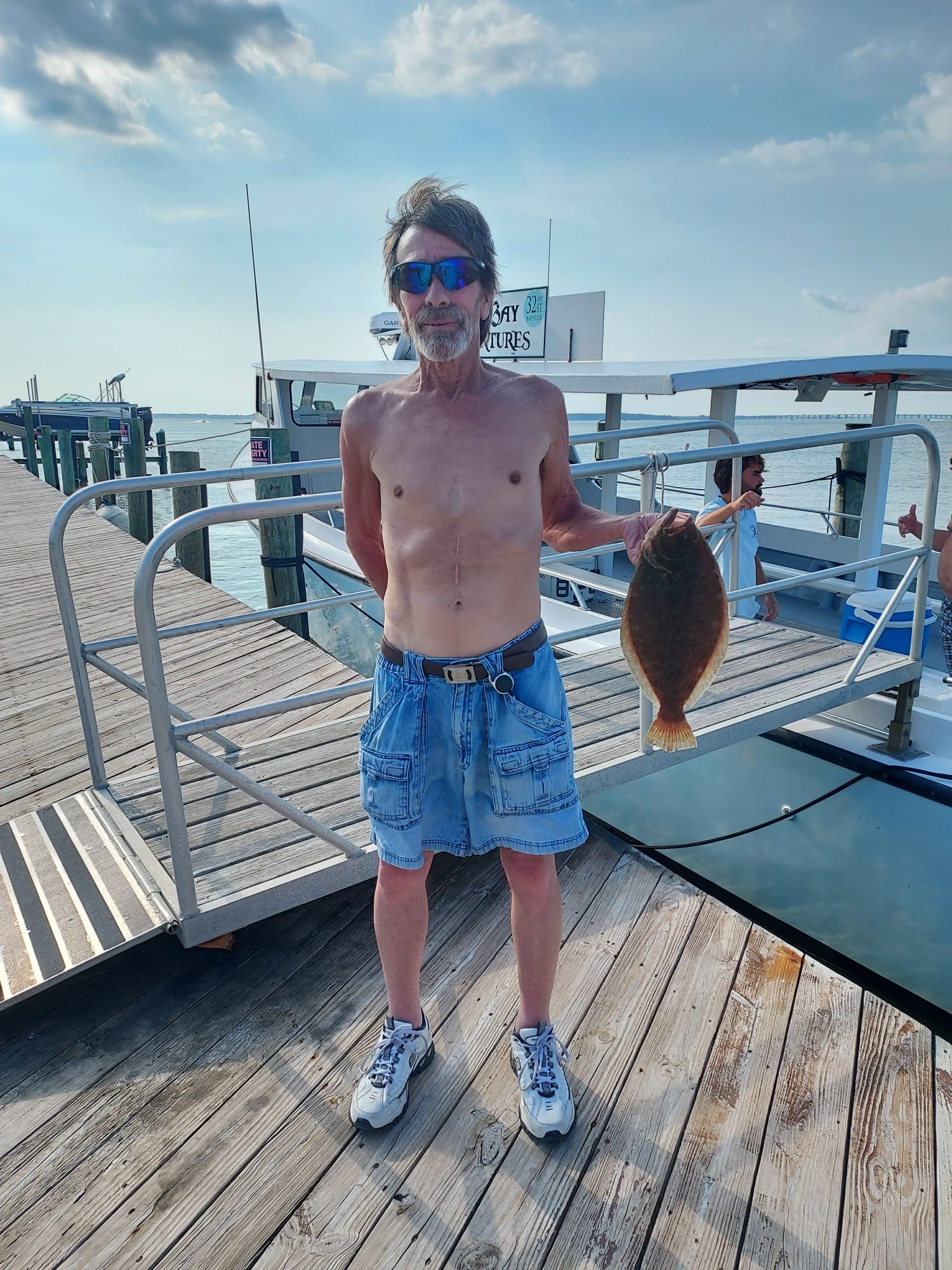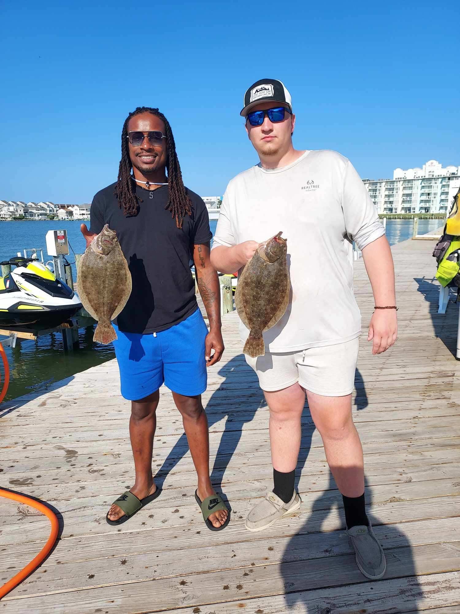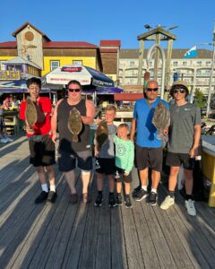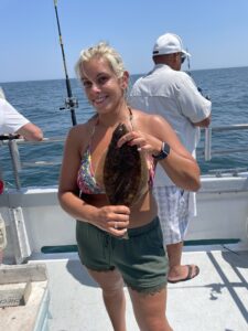 It was another beautiful summer day today with sunny skies, warm temps and light breezes and it was a great day to be on the water…..so I was. Kristen and I hit the bay for some flounder fishing where we had some throwbacks and then we enjoyed an awesome lunch at the Reel Inn at Harbor Island. The ocean was flat calm and there was some very good fishing out there for some.