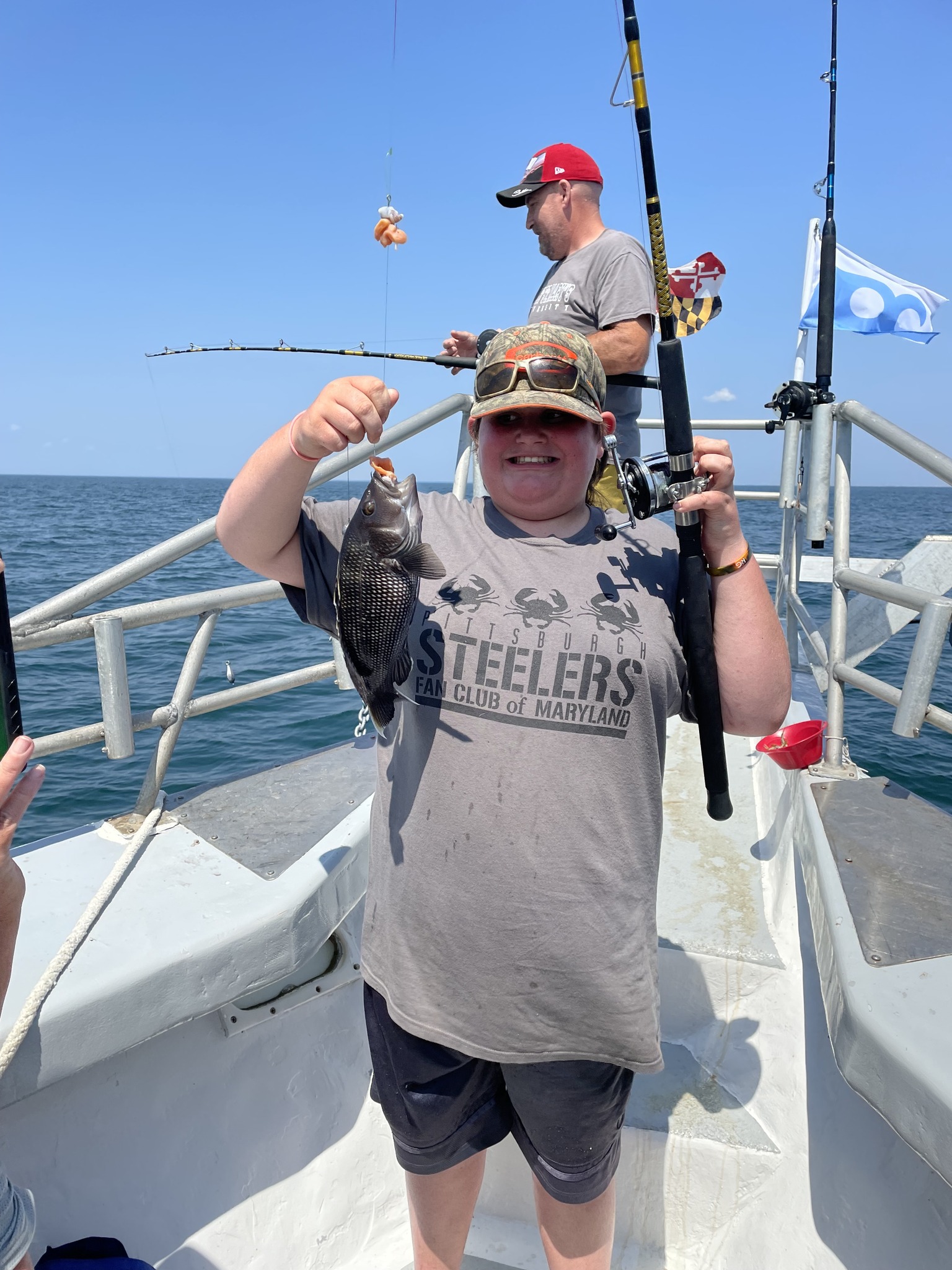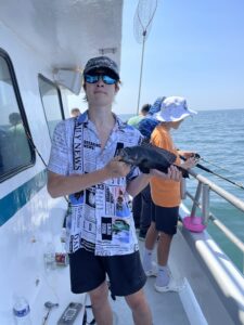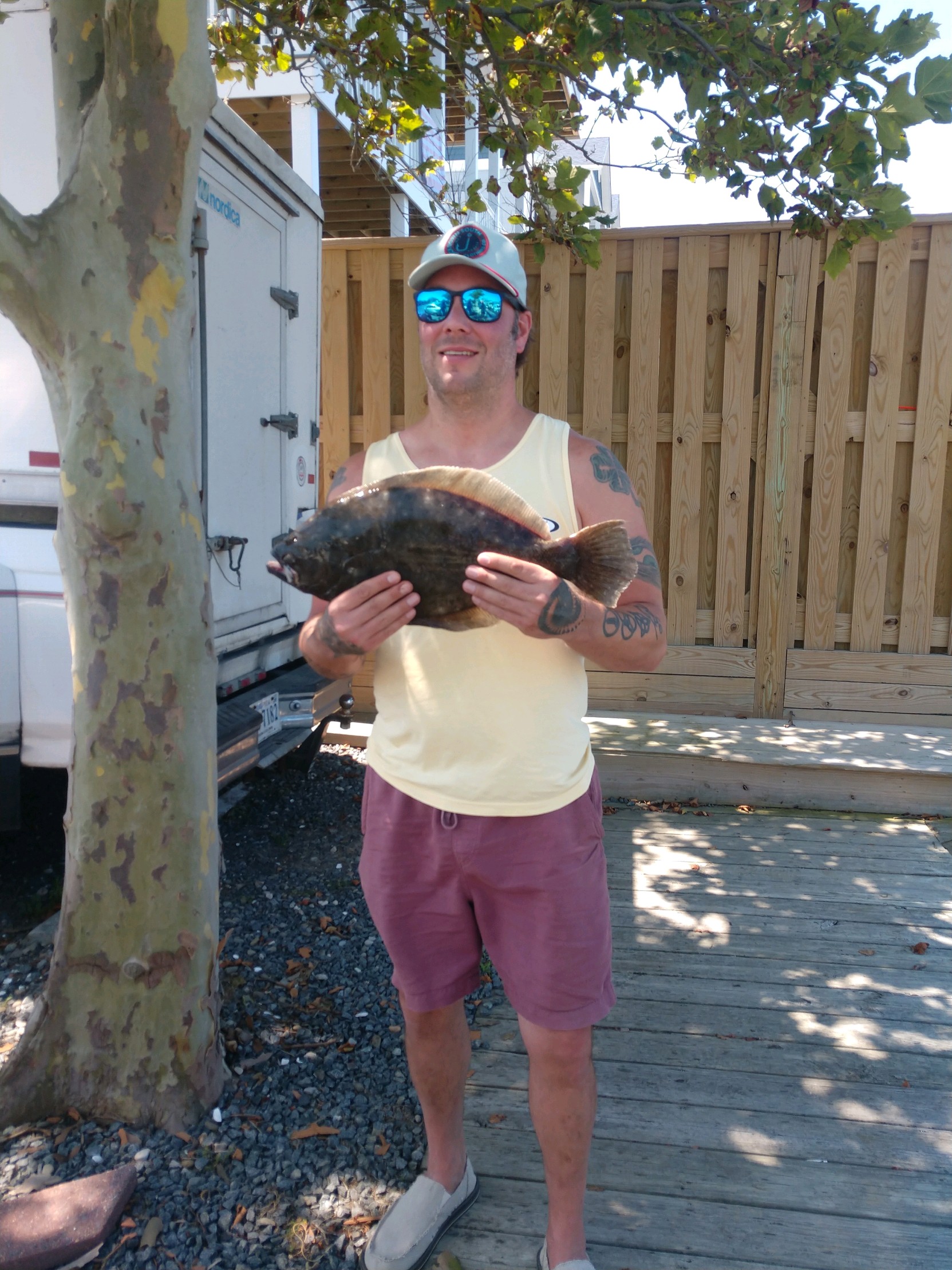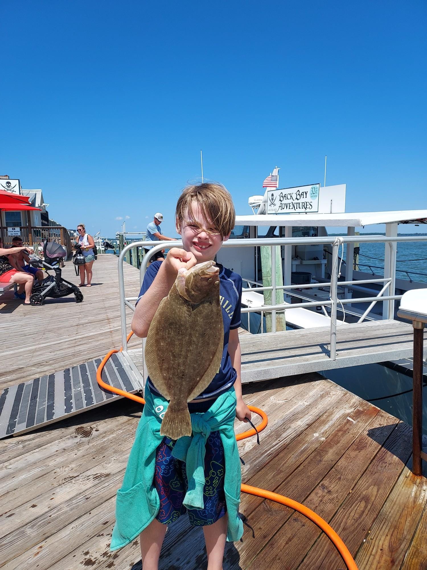 It was another beautiful summer day today with sunny skies, warm temps and light breezes and it was a great day to be on the water…..so I was. Kristen and I hit the bay for some flounder fishing where we had some throwbacks and then we enjoyed an awesome lunch at the Reel Inn at Harbor Island. The ocean was flat calm and there was some very good fishing out there for some.