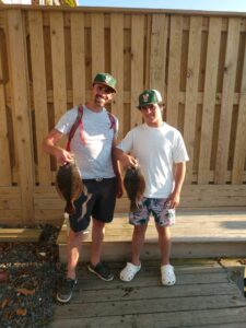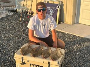 Back bay fishing for flounder has been good on the clean water of the high tide the past few days. Yesterday Caleb Powell caught his limit of flatties using Gulp on Deadly Tackle Deadly Double rigs.