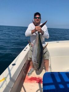 The crew of the Boss Hogg with Captain Alex Beane at the helm was practicing for the OC Tuna Tournament and they caught a fish that they’re going to want to see again this weekend. The big 242 pound bigeye they landed would probably do some damage at the OC Fishing Center this weekend.