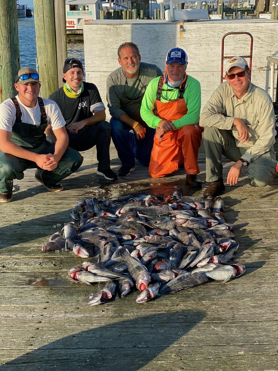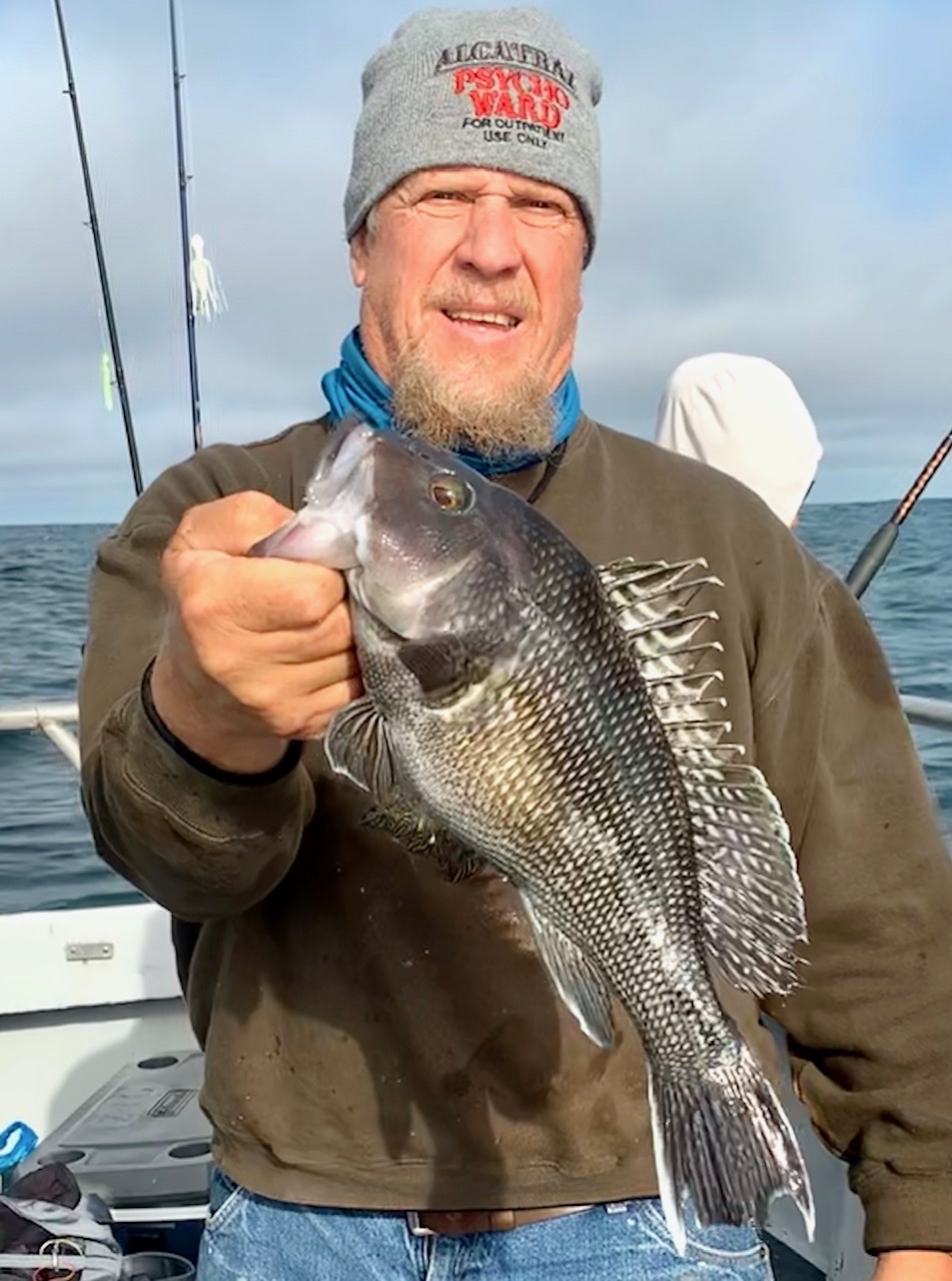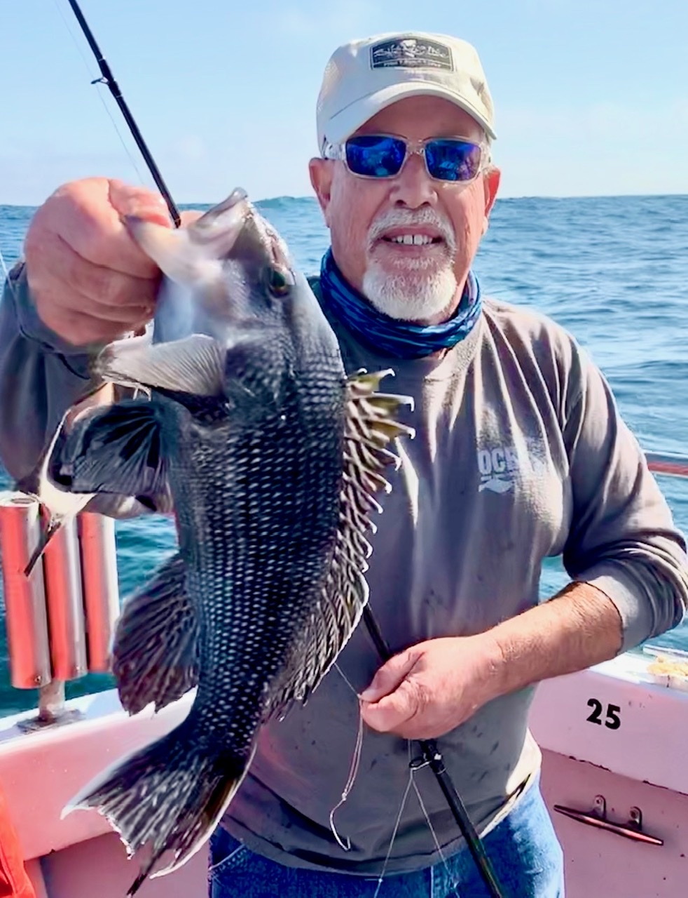 Captain Chase Eberle of Chasin’ Tides Charters caught his crew so many sea bass that he had to break out the snow shovel today.