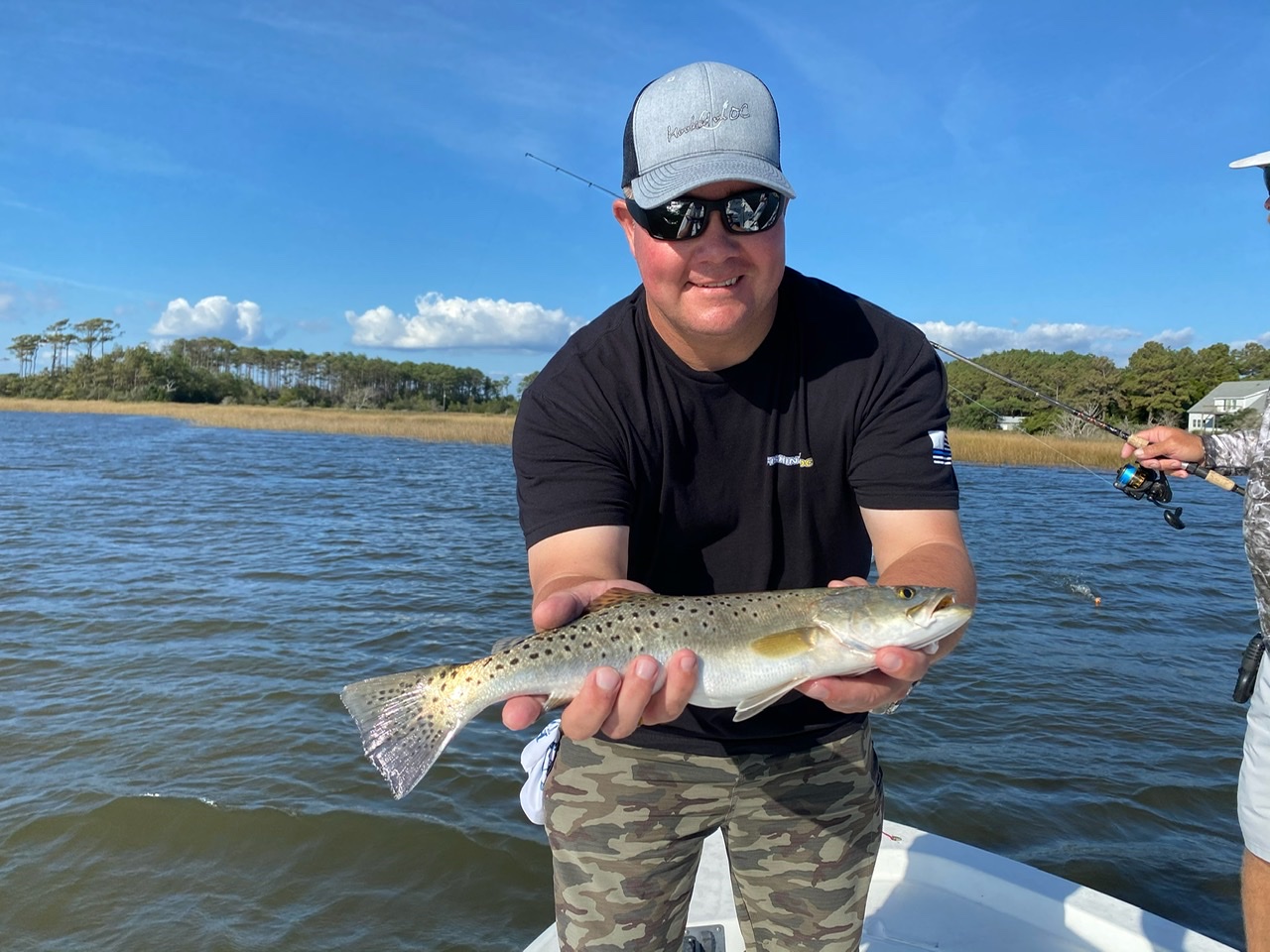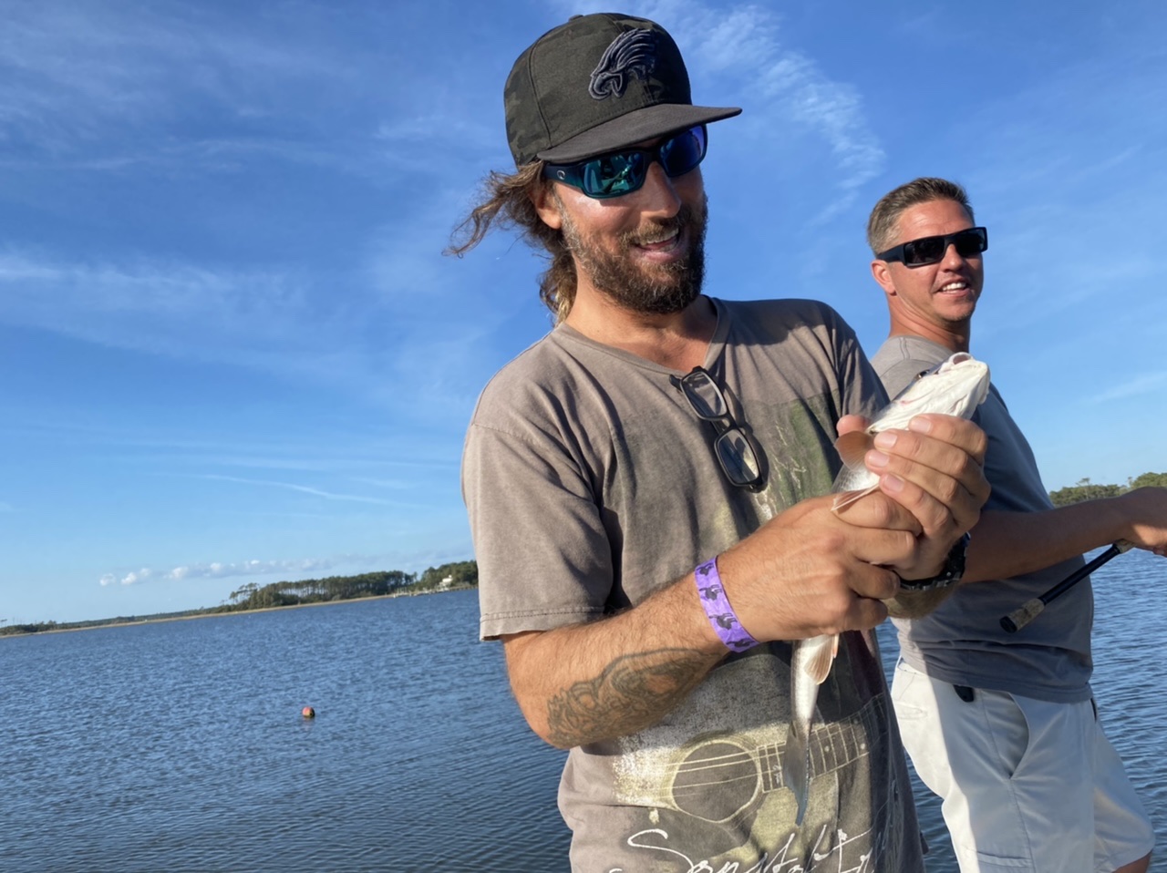 We had the day off from streaming today so we took advantage of the weather and got on board with Captain Nick with Chaisin’ Tails Outdoors in Atlantic Beach, NC for some skinny water fishing for a new episode of Hooked on OC. I was joined by Derrick Myers of Innasense, Kevin C. and of course Dave Messick. We had a great trip catching and releasing red drum and speckled trout in awesome conditions!