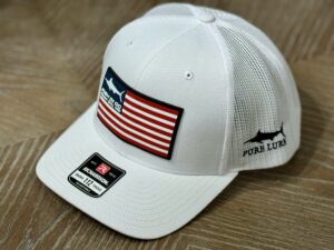 Fish in OC / Pure Lure rubber patch marlin flag hat.