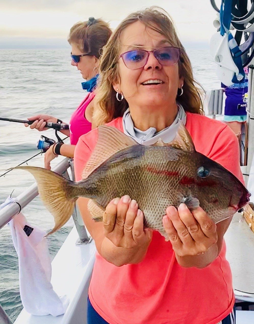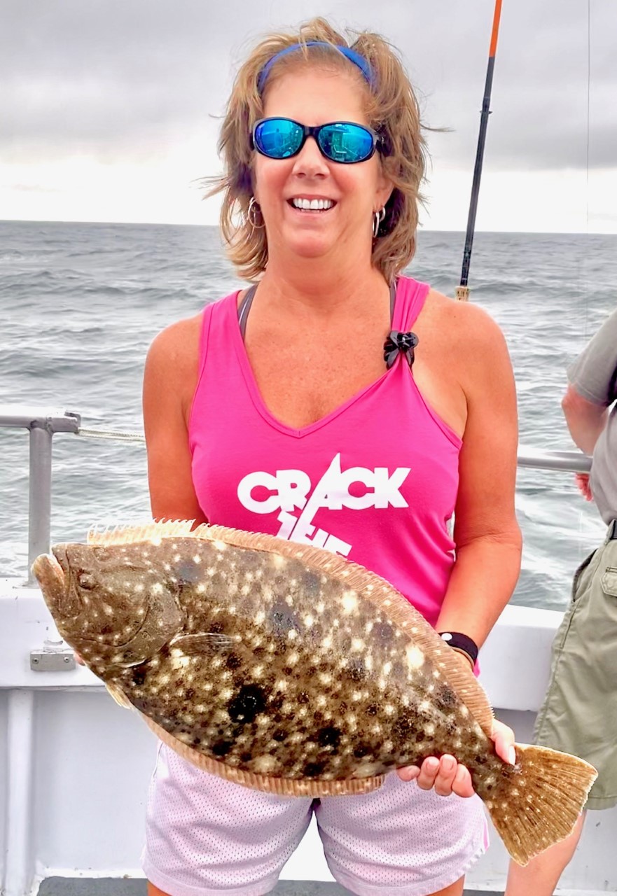 Lisa Ruziicka of BelAir MD took everyone’s pool money today with a real nice fluke. Had several other good flounder aboard as well. Tim Herbert of Forest Hill MD had the largest trigger.