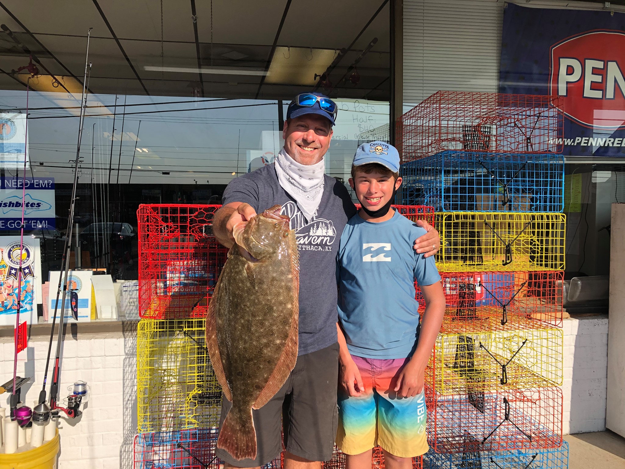 The guys at Fenwick Tackle sent this photo of Scott Seigel who caught a 4 pound flounder behind Assateague Island while fishing with his son Max.