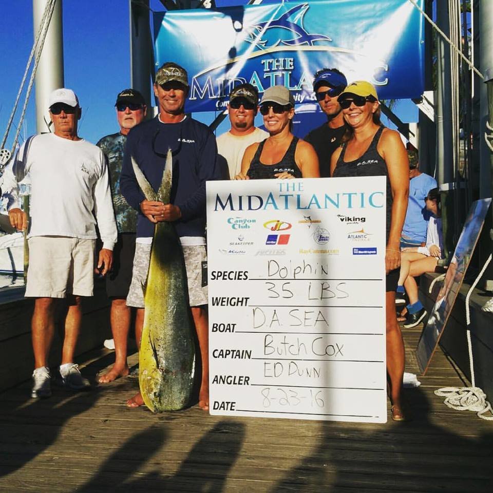 Ed Dunn fishing on his DA Sea holds first place in the dolphin category with his 35 pound dolphin that was weighed in Ocean City yesterday.