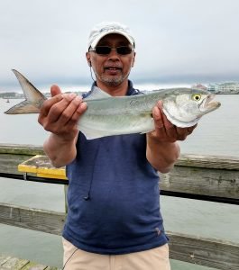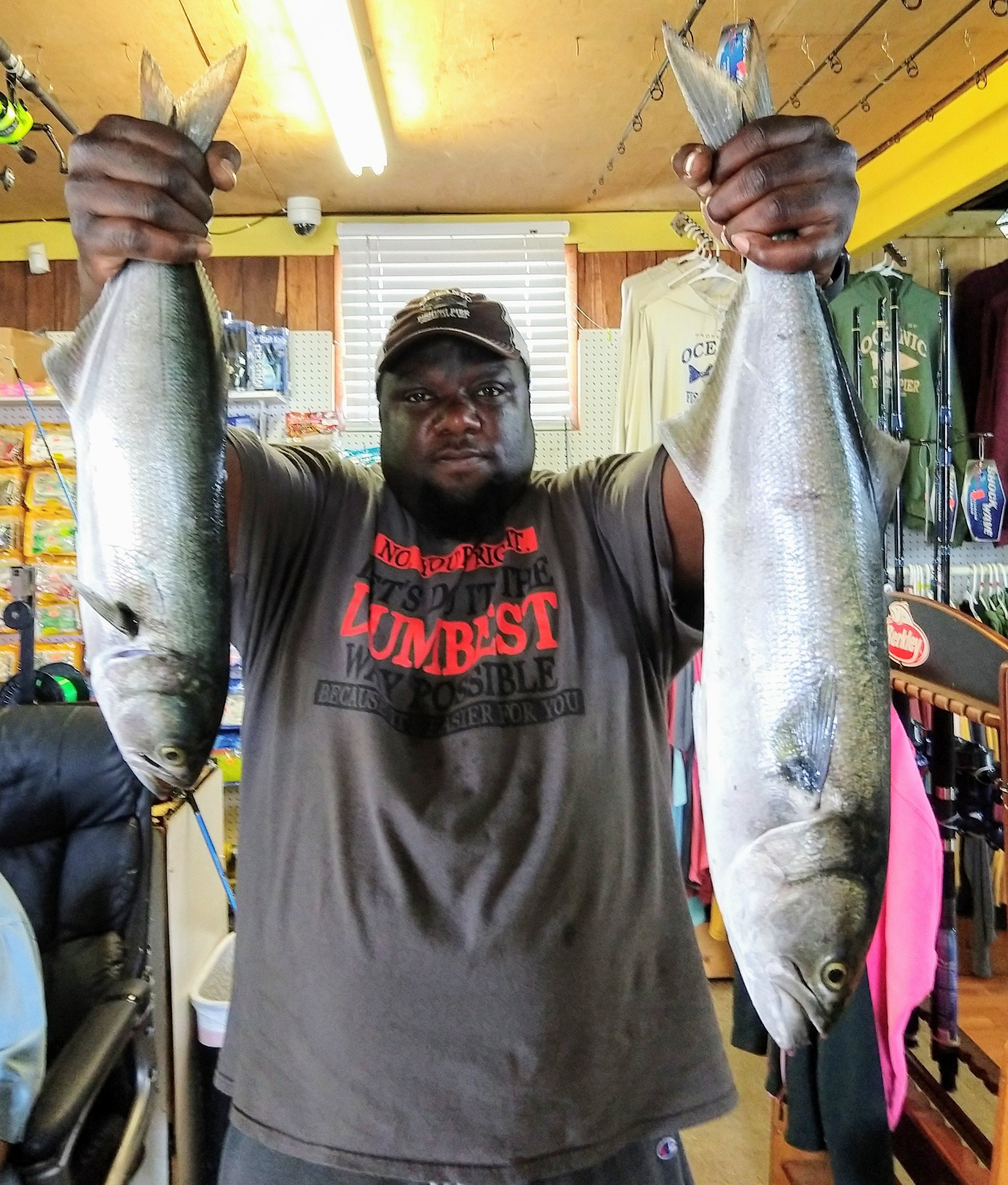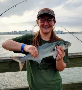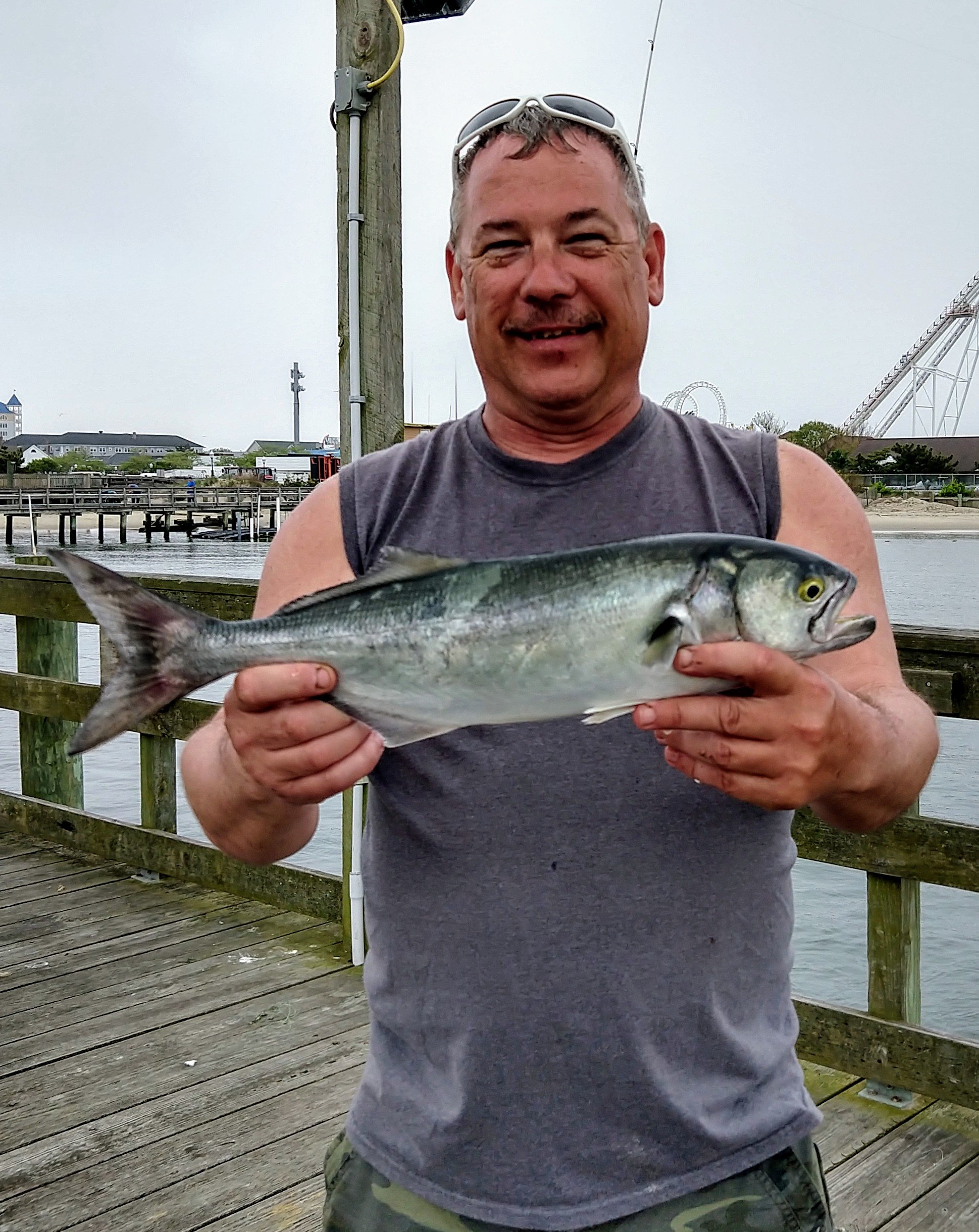 Action at the Oceanic Pier in downtown Ocean City was good over the weekend with lots of bluefish and shad.  Bob Haltmeier reports that the fish have gotten a little larger too with some blues coming over the rail at larger than 24″.